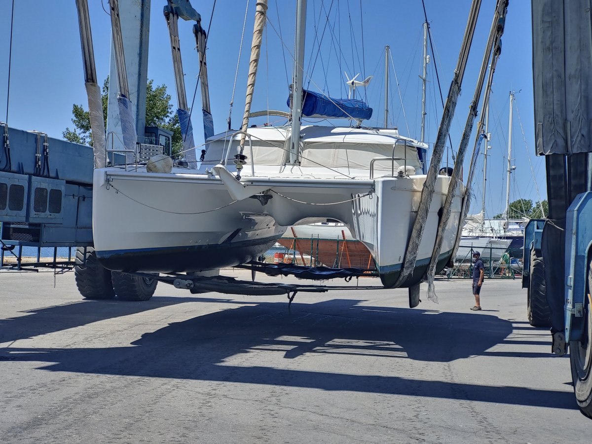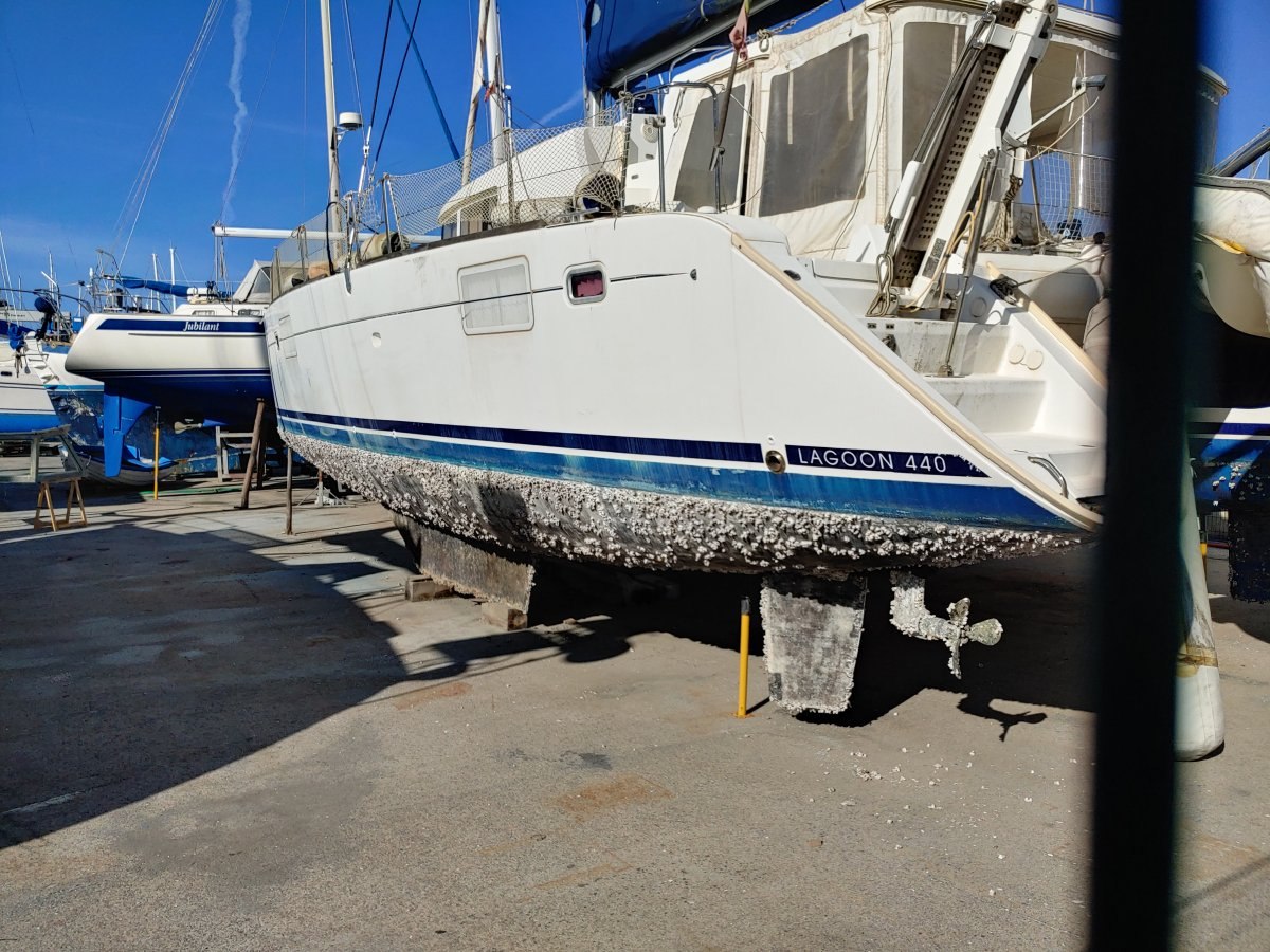 Wie ich meine hat der Gutachter einen guten Job gemacht. Nicht nur was das Unterwasserschiff angeht, sondern auch in den Motorräumen, in den Bilgen, den Kabinen und auch auf dem Mast, hat er sich alles gründlich angesehen. Also bin ich zuversichtlich, daß alles in Ordnung ist. Keine Osmose, keine De-Laminierung, keine kritischen Risse oder Brüche.