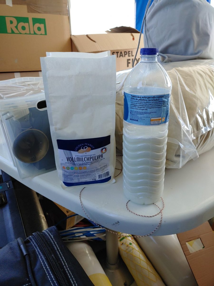 Der Tag beginnt nicht gut. Ich kann auf dem Boot zwar Kaffee kochen, habe aber vergessen auch Milch einzukaufen. Glück im Unglück, unter meinem schon in Deutschland vorsorglich eingekauften Proviant für’s Boot, ist auch eine Tüte Milchpulver. Bisher hatte ich das noch nicht probiert, aber jetzt ist genau der richtige Zeitpunkt dafür. Mit Wasser anrühren und schon gibts Milch. Schmeckt tatsächlich nach Milch. Ob 1,5 %, 3,5 % oder 10 % Fettanteil kann man einfach selbst bestimmen, durch die Menge an Pulver, die man dem Wasser zusetzt.