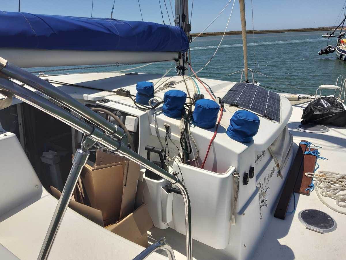 Das Boot: die Mephisto, ist ein knapp 12 m langer Katamaran von Fountaine Pajot, eine Lipari 41 in Maestro Ausführung. Maestro ist die Eigner-Variante mit einem Rumpf für den Eigner (Schlafbereich und Badezimmer) und im anderen Rumpf befinden sich 2 Gästekabinen mit einem Gästebad.