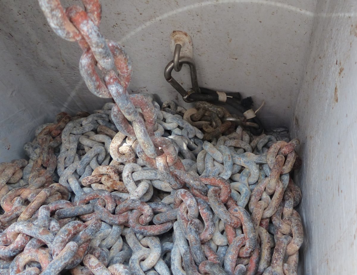 Wieder zurück auf dem Boot schaue ich mir noch einen Teil der Stauräume in den Rümpfen unter den Bodenbrettern an. Überraschung! Ich finde immer wieder neue Ausrüstungsreste der Vorbesitzer, diesmal zwei Rettungswesten und eine Sicherungsleine. Die Sicherungsleine ist einwandfrei, bei den Rettungswesten bin ich mir da nicht so sicher. Sobald ich Zeit habe, schau ich mir die erst einmal genauer an.