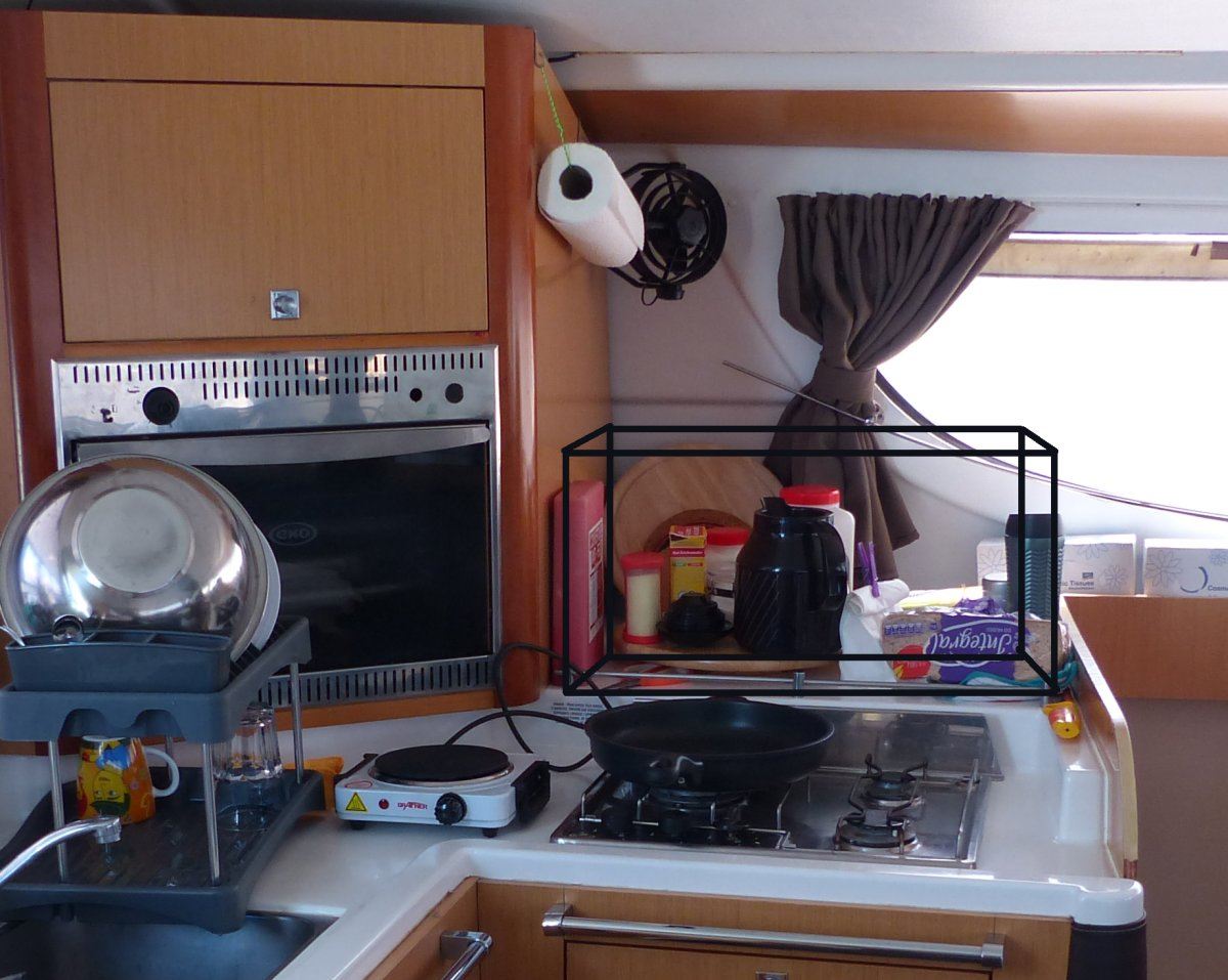 Ich habe mir auch die Zeit genommen mal wieder handwerklich tätig zu werden. Für die Küche habe ich mir ein Schränkchen zusammengebaut, um die Dinge des täglichen Gebrauchs griffbereit, aber dennoch aufgeräumt zu haben. Außerdem habe ich so mehr Stellplatz, denn meine Kaffeemaschine und meine elektr. Schneidemaschine will ich mit aufs Boot nehmen.