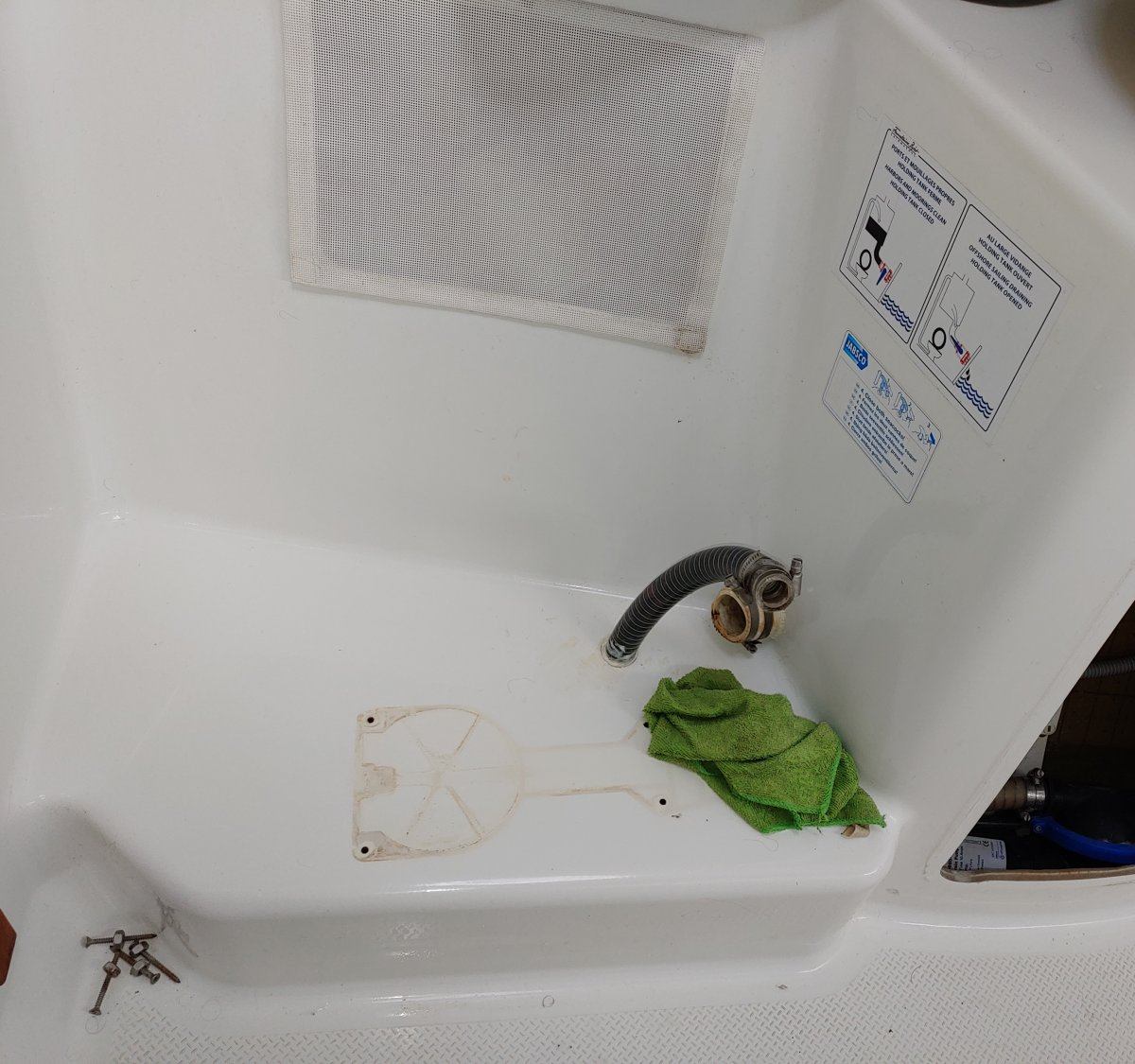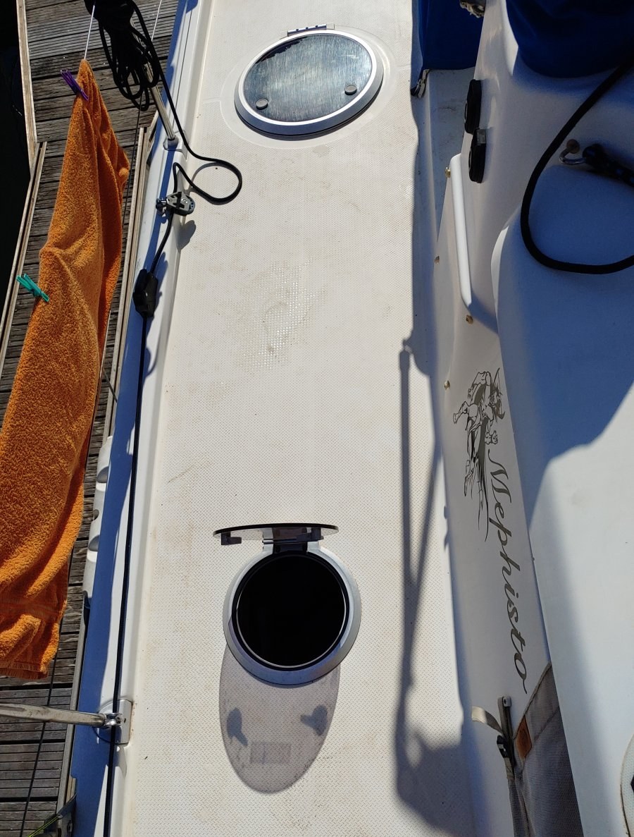 Da heute Sonntag ist, tue ich nicht viel, nur ein wenig Aufräumen und sauber machen. Die verwendeten Werkzeuge und Kleinteile wieder aufräumen und im Rumpf verstauen. Morgen geht es dann mit der Reparatur des Außenbordmotors weiter.