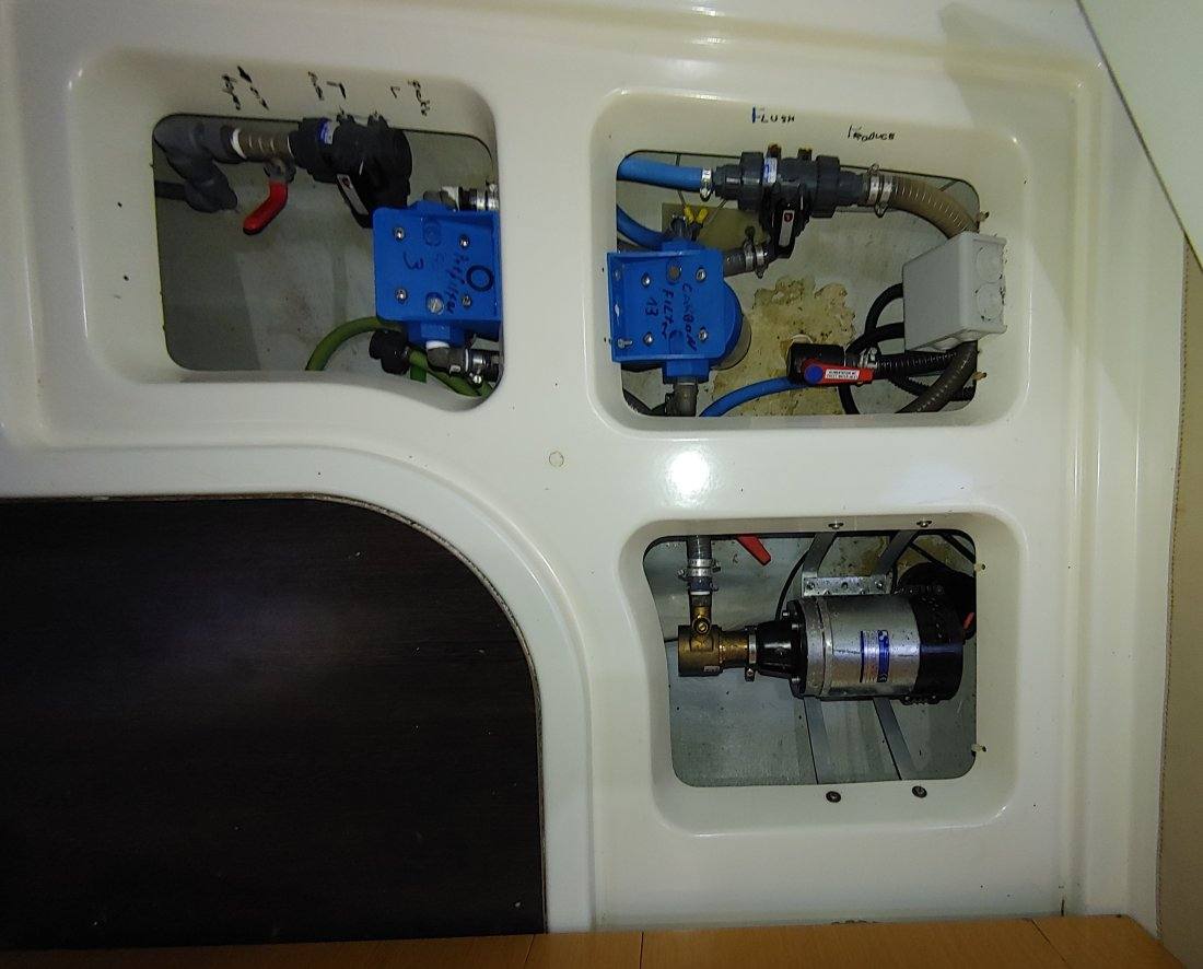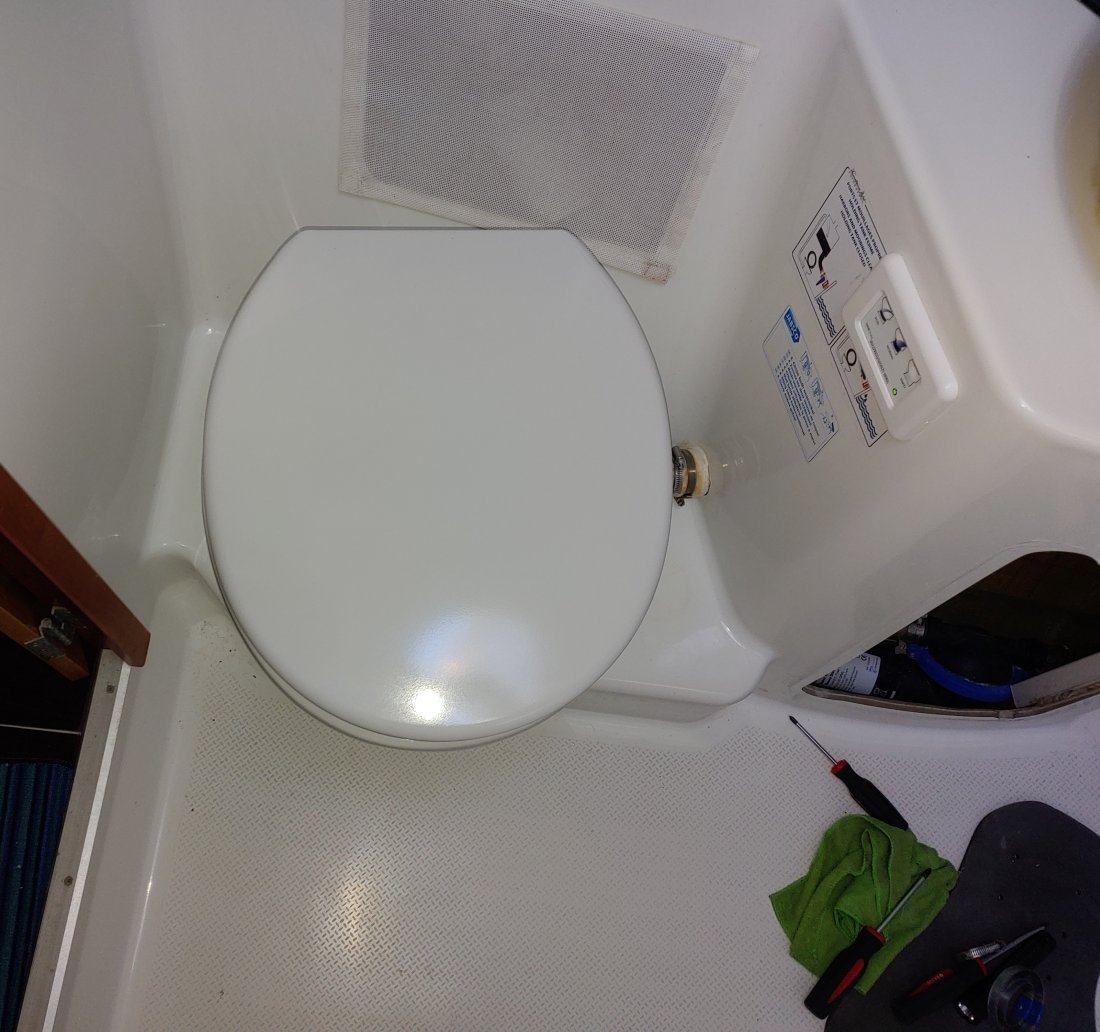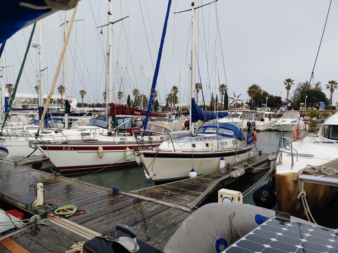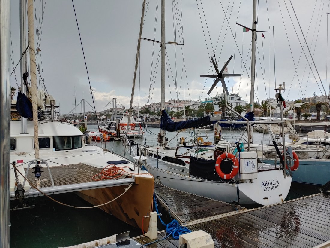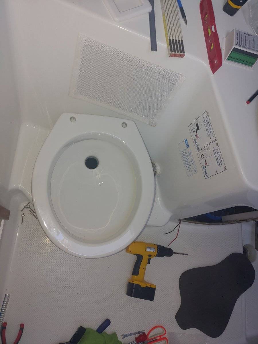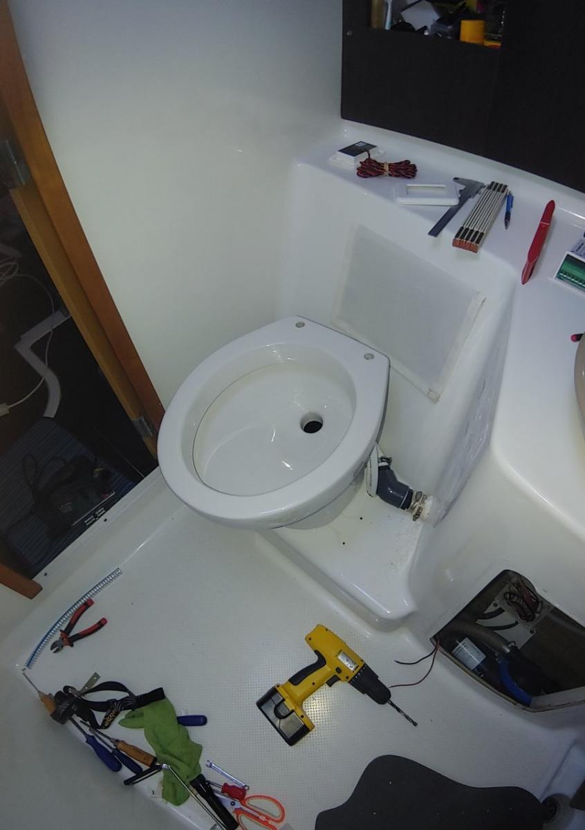 Zunächst aber ein paar Tage zurück. Am Donnerstag (4.11.) begann mein Arbeitsintervall hier in Lagos. Denn darum bin ich überhaupt in die Marina gefahren, um besser arbeiten zu können. Angefangen habe ich mit dem Einbau der elektrischen Toilette. Wer schon mal auf einem Boot war, kennt vielleicht die üblichen Toiletten zum Pumpen. Ich empfinde die Dinger als eine Zumutung und wenig komfortabel. Für einen 2-Wochen-Urlaub noch OK, aber nicht für einen dauerhaften Aufenthalt. Also muß zunächst die vorhandene Toilette abgebaut werden. Das war der einfache Teil, denn die Befestigung besteht nur aus 4 Schrauben und 3 Schlauchschellen, dann kann das ganze Ding in den Müll. Der Einbau der elektrischen Toilette ist schon ein ganzes Stück schwieriger, denn die Anschlüsse für Wasser und Abwasser sind hier ganz anders. Außerdem muß eine zusätzliche Meerwasserpumpe eingebaut werden und das ganze braucht auch noch Strom. Vor allem die zusätzliche Pumpe war knifflig, weil eigentlich kein Platz dafür da ist und man auch nicht so einfach die Bordwand anbohren kann, um sie zu befestigen. Glücklicherweise ist der Bootsshop leicht zu Fuß zu erreichen und hat auch eine brauchbare Auswahl an Zubehör- und Ersatzteilen. Zudem war in den zwei Anhängerladungen, die ich an Ausrüstung hier an Bord gebracht habe, auch einiges an Werkzeug und nützlichen Kleinteilen wie Schrauben, Schlauchschellen und Reste von Holzplatten enthalten.