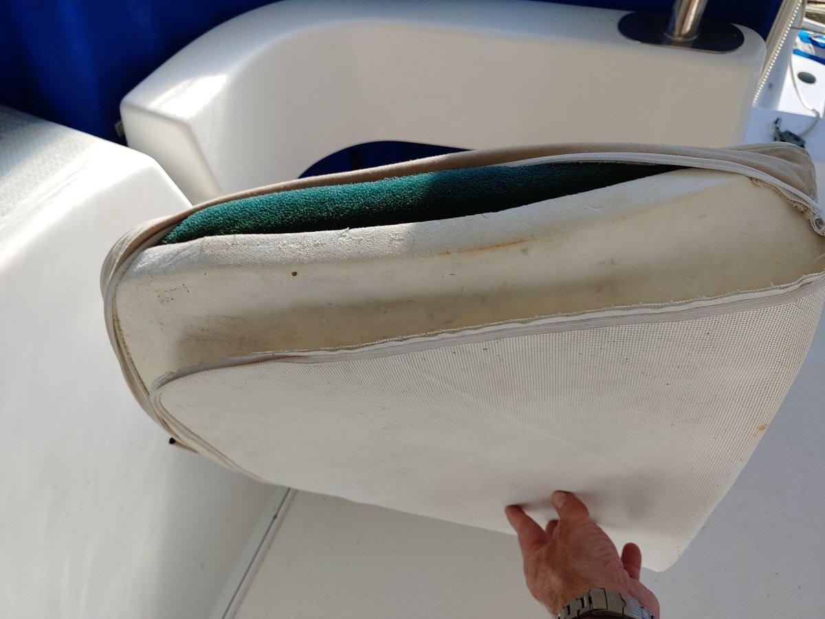 Die drei Dinge sind, oder besser waren, das elektrische WC, der Außenbordmotor und die Anfertigung der neuen Sitzkissen. Auch, wenn ich das nur in Auftrag gebe und sie nicht selbst nähe, ich mußte ja erst einmal einen Laden finden, der das für einen vernünftigen Preis macht und innerhalb von 3 Wochen auch fertig wird. Wie wichtig es ist, den Richtigen damit zu beauftragen zeigt schon die Preisspanne dafür, von 720,-€ bis 2070,-€.