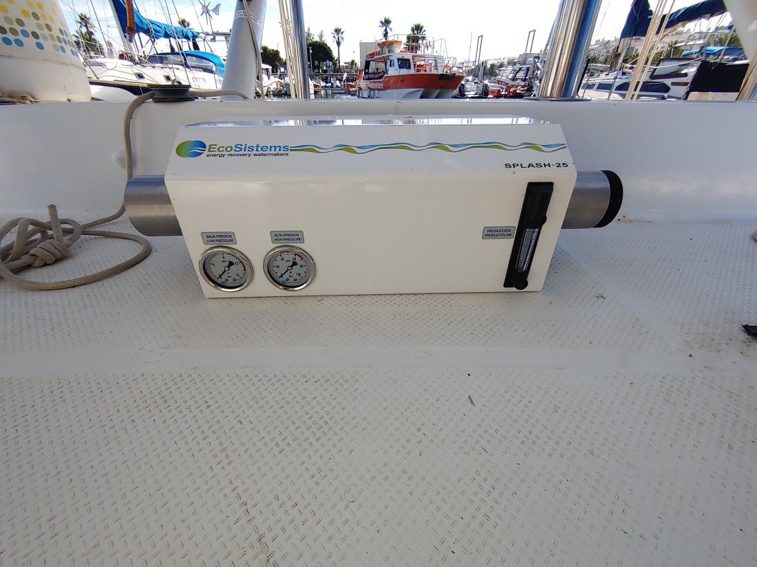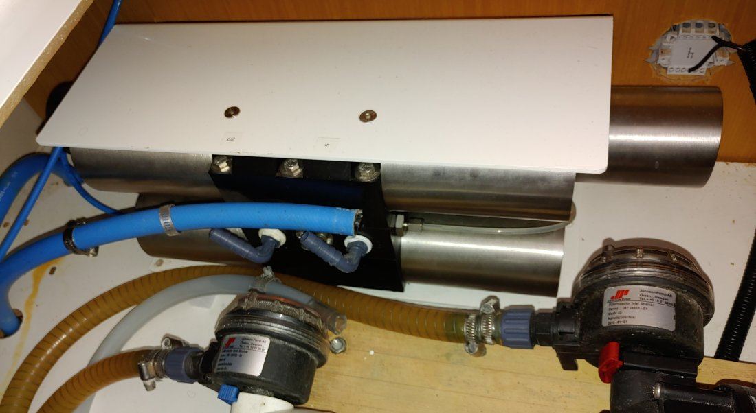 Der vierte Punkt ist der Wassermacher. Laut Vorbesitzer soll er noch funktionieren, nur die Membran und Filter müßten ausgetauscht werden. Ich hoffe das stimmt, die Sachen habe ich schon in Deutschland eingekauft. Falls doch etwas mit der Hochdruckpumpe nicht stimmt, wird es sehr aufwendig. Übrigens, der Wassermacher ist eine nützliche Maschine, die aus Salzwasser Trinkwasser machen kann. Das funktioniert im Prinzip durch eine Membran, die engmaschig genug ist, die Salzmoleküle zurückzuhalten. Salzwasser wird quasi mit etwa 60 bar durch die Membran gepresst. Auf der anderen Seite der Membran kommt Süßwasser an, das Salz wird zurückgehalten. Der Fachausdruck ist „Umkehrosmose“.