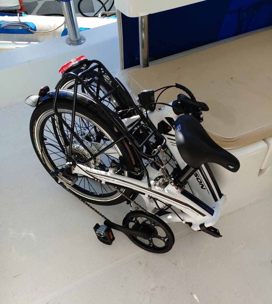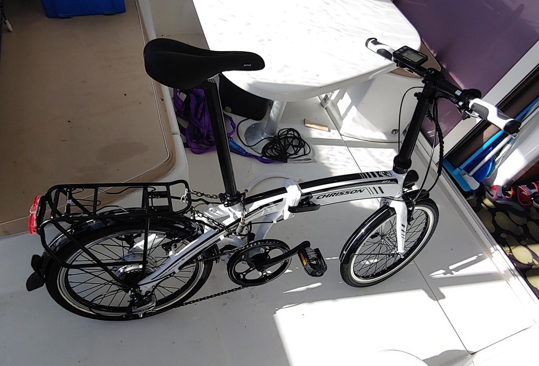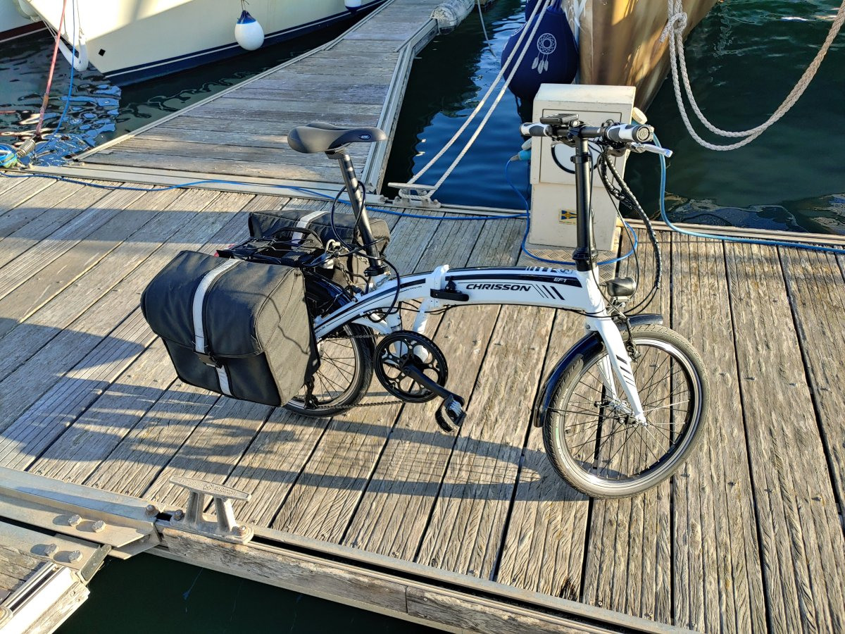 So langsam kann ich das Bootsleben genießen und da heute Sonntag ist, das Wetter wunderbar warm und sonnig bei 24°C, teste ich mal mein Klappfahrrad. Das hatte ich mir schon vor etwa einem Jahr gekauft, weil es zum Sommerende besonders günstig war. Ein Glück, denn wenn man sieht welche Lieferschwierigkeiten es gerade jetzt auch bei Fahrrädern gibt, hätte ich im August oder September keines mehr bekommen.
