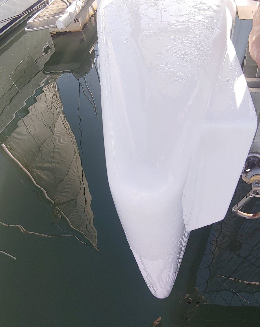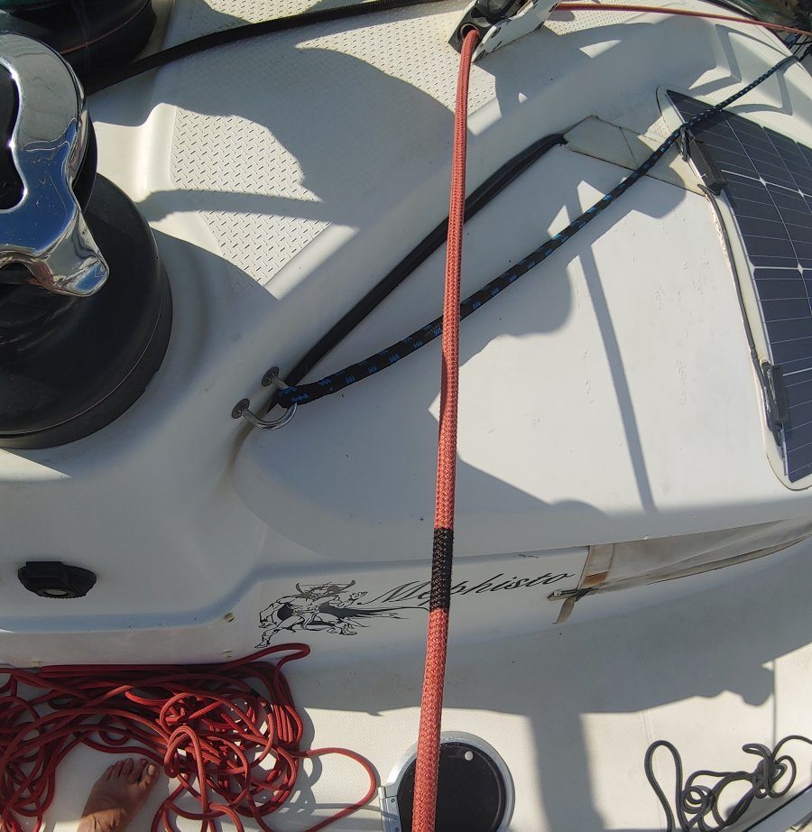 Ich glaube, ich hatte es noch gar nicht erwähnt. Während die Mephisto Anfang September noch in Alvor an der Mooring lag, hat ein anderes Boot den Bug gestreift oder gerammt. Der Anker hatte nicht richtig gegriffen und der Skipper ging zum Einkaufen von Bord. In dieser Zeit ist das Boot leider so weit abgetrieben, daß es mit dem Bug kollidierte. Mir wurde gesagt, daß andere Skipper, das glücklicherweise schnell bemerkt und das Schlimmste verhindert haben. Freundlicherweise hat sich der Verursacher (ein Landsmann) auch tatsächlich bei mir gemeldet, was bedauerlicherweise nicht selbstverständlich ist. Seine Versicherung (die Gleiche, die ich auch habe) hat die Regulierung des Schadens übernommen. Am Dienstag wurde der Schaden nun repariert und heute konnte ich das Ganze mit Begleichung der Rechnung abschließen. Wieder ein Punkt weniger auf der To-do-Liste.
