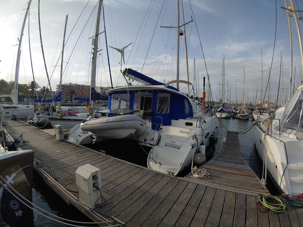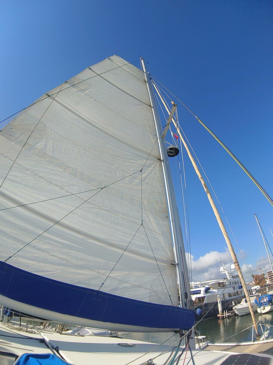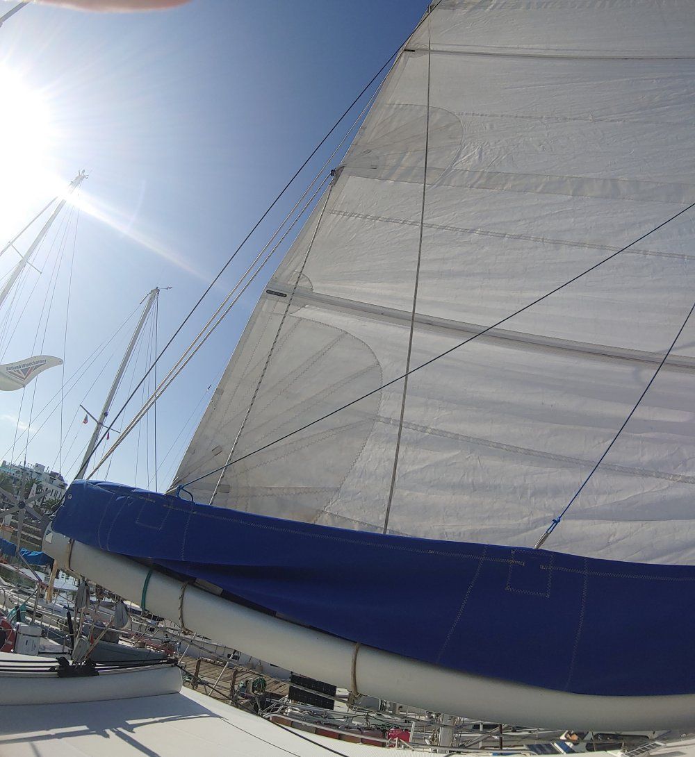 Gestern, Mittwoch, war Einparkübungs- und Segeltag. Morgens war recht wenig Wind und da bot mein freundlicher, englischer Nachbar mir an, mit mir das Einfahren in die Box mit meinem Katamaran zu üben. Wir haben uns im hinteren, ruhigeren Teil der Marina leere Boxen gesucht und in die bin ich dann ganz langsam reingefahren. Das ist wie das Einparken beim Auto in eine enge Garage, rechts und links ist nicht mehr viel Platz. Nur mit dem großen Unterschied, daß es auf dem Wasser praktisch keine Reibung gibt. Dadurch stoppt das Schiff nicht, wenn man kein Gas mehr gibt, es dreht weiter, auch wenn man wieder geradeaus lenkt und der Wind schiebt einen einfach vor sich her, dahin, wo man gerade nicht hin wollte. Aber alles in allem hat es ganz gut geklappt und als ich dreimal hintereinander auf Anhieb in die Box gekommen bin, haben wir es gut sein lassen und sind rausgefahren, um die Segel zu testen. Tatsächlich Segeln ging nicht, dazu war zu wenig Wind, aber um mal die Segel zu setzen und alle Leinen zu überprüfen war es gut genug. Dabei kam dann schon die eine oder andere Überraschung zutage, aber das zu erklären wäre hier, denke ich, für die meisten zu langweilig. Nur soviel, es sind wieder ein paar Kleinigkeiten mehr zu erledigen, nichts Großartiges, aber es muß eben gemacht werden.