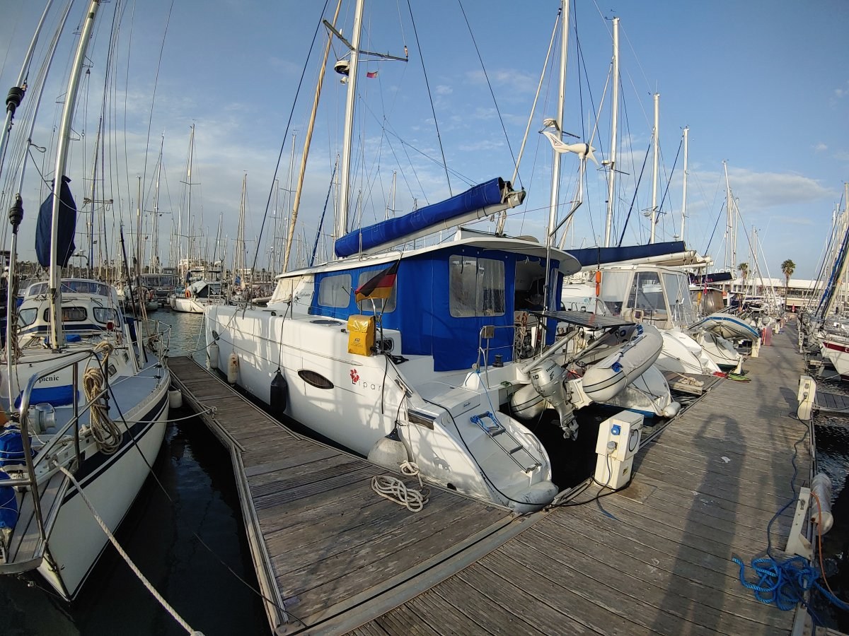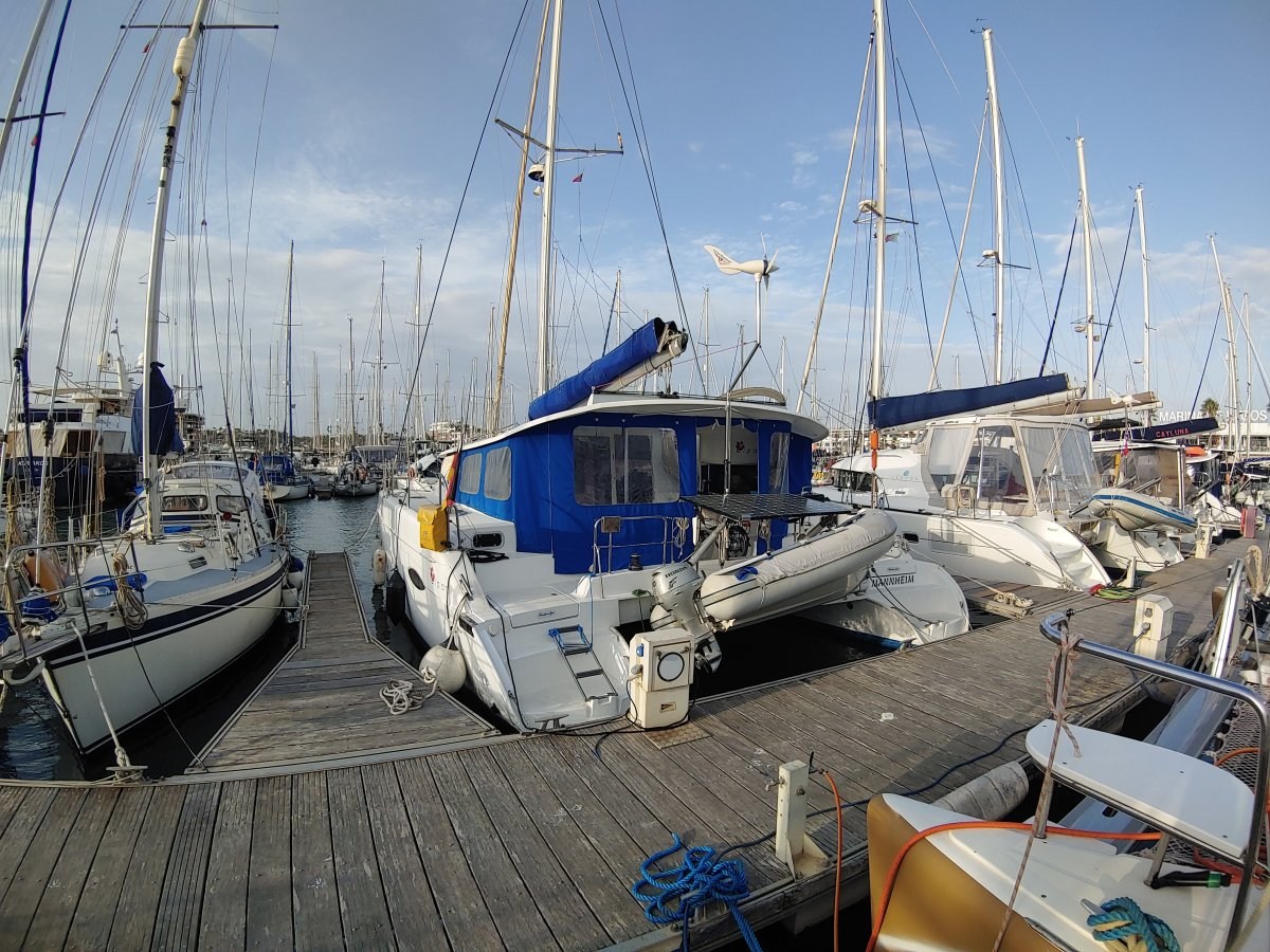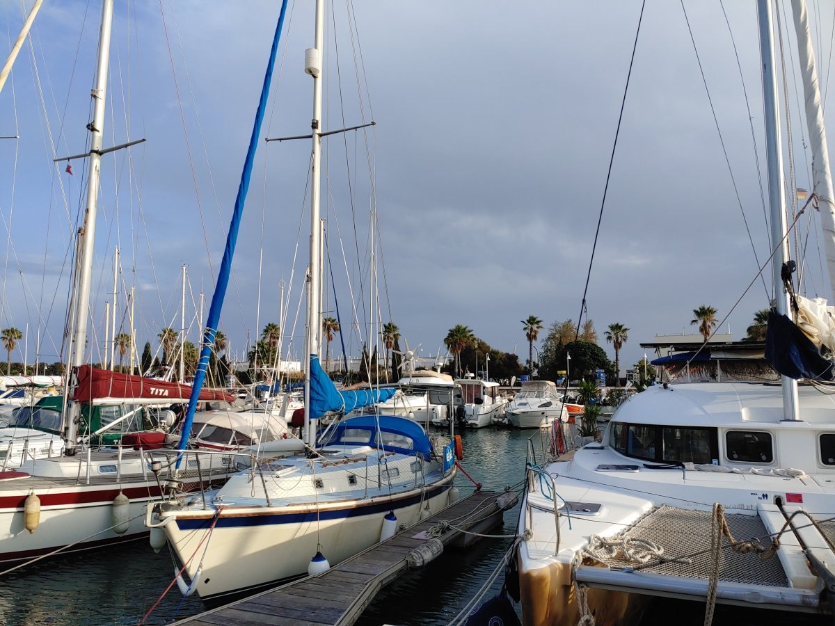 Gestern, Mittwoch, war Einparkübungs- und Segeltag. Morgens war recht wenig Wind und da bot mein freundlicher, englischer Nachbar mir an, mit mir das Einfahren in die Box mit meinem Katamaran zu üben. Wir haben uns im hinteren, ruhigeren Teil der Marina leere Boxen gesucht und in die bin ich dann ganz langsam reingefahren. Das ist wie das Einparken beim Auto in eine enge Garage, rechts und links ist nicht mehr viel Platz. Nur mit dem großen Unterschied, daß es auf dem Wasser praktisch keine Reibung gibt. Dadurch stoppt das Schiff nicht, wenn man kein Gas mehr gibt, es dreht weiter, auch wenn man wieder geradeaus lenkt und der Wind schiebt einen einfach vor sich her, dahin, wo man gerade nicht hin wollte. Aber alles in allem hat es ganz gut geklappt und als ich dreimal hintereinander auf Anhieb in die Box gekommen bin, haben wir es gut sein lassen und sind rausgefahren, um die Segel zu testen. Tatsächlich Segeln ging nicht, dazu war zu wenig Wind, aber um mal die Segel zu setzen und alle Leinen zu überprüfen war es gut genug. Dabei kam dann schon die eine oder andere Überraschung zutage, aber das zu erklären wäre hier, denke ich, für die meisten zu langweilig. Nur soviel, es sind wieder ein paar Kleinigkeiten mehr zu erledigen, nichts Großartiges, aber es muß eben gemacht werden.