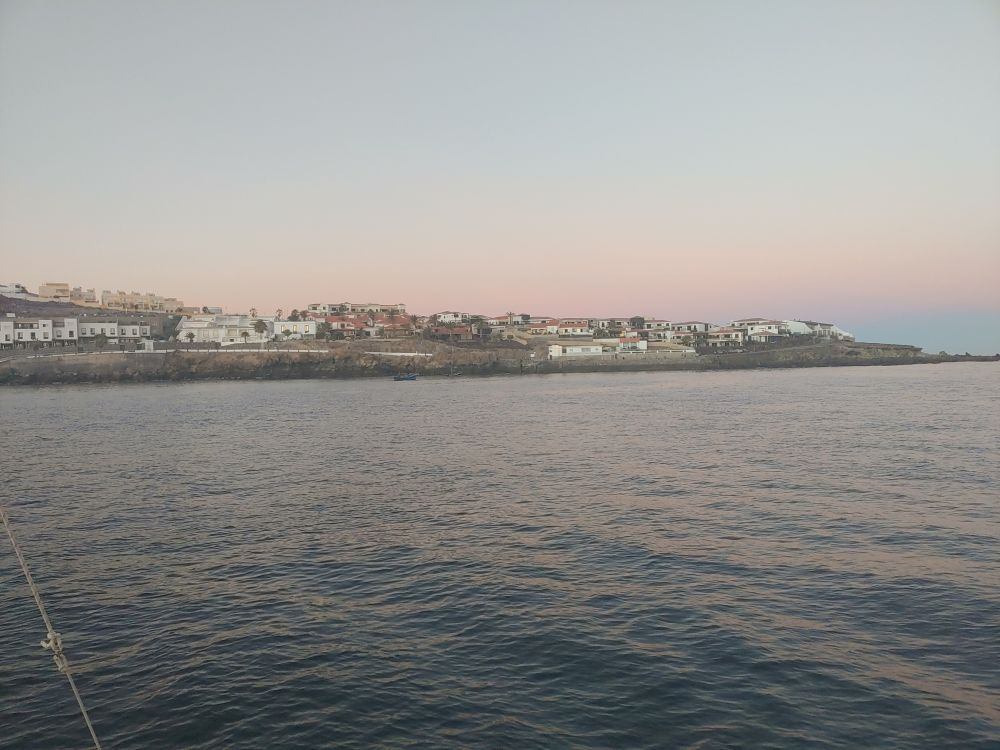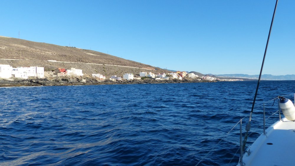 Den ganzen Tag schon schaukelt die Mephisto in der Bucht von Abona auf den Wellen, aber seit Sonnenuntergang hat das noch zu genommen. Wind aus Norden und die Wellen, wenn auch nicht sehr hoch, aus Osten. Das bewirkt, daß die Mephisto die Wellen genau von der Seite abbekommt und dadurch enorm ins Wanken gerät. Es schwankt noch stärker als auf der Überfahrt von Madeira nach Teneriffa. Wenn der Wind auch aus Osten käme und die Wellen damit genau von vorne, wäre alles harmlos.