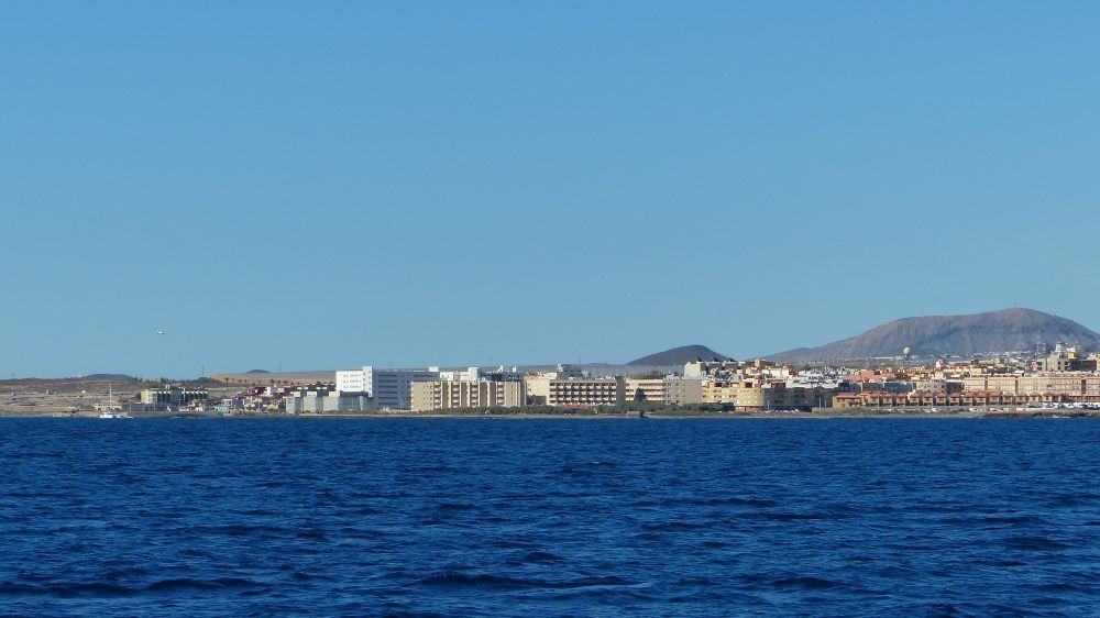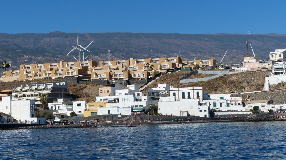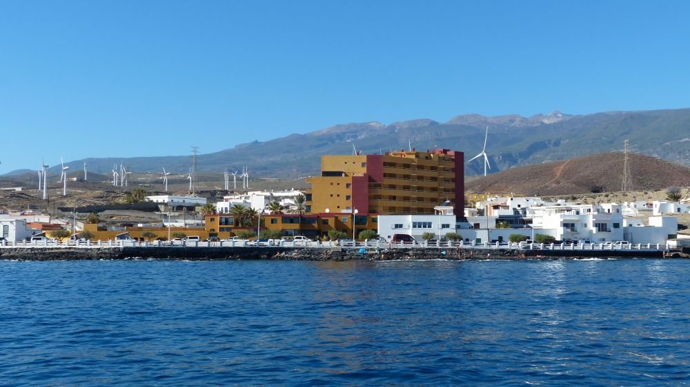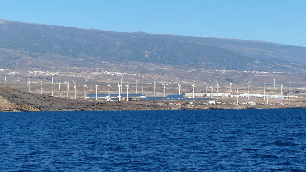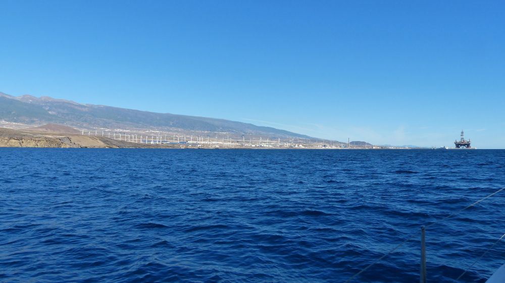 In der Bucht gibt es einiges an Gebäuden und direkt dahinter jede Menge Windkraftanlagen. So dicht würden die Bewohner die Windräder in Deutschland sicher nicht akzeptieren. Leider ist die Wasseroberfläche hier in der Bucht sehr unruhig, die Mephisto schaukelt den ganzen Tag und die Nacht kräftig hin und her. Es war eine unruhige Nacht, obwohl der Anker hielt, aber das Geschaukel ist nervig. Nur wie gesagt, es gibt keine gute Alternative, bis zum 4.1. bleibe ich hier, ab dann habe ich eine Reservierung für die Marina in Santa Cruz.