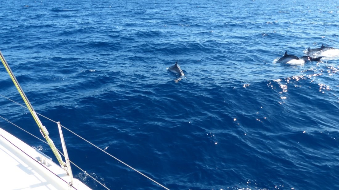 Die Wellen sind zwar nicht hoch, aber kurz (4 – 5 Sekunden) und das Boot schaukelt sich im Rhythmus auf. Auf der Überfahrt waren die Wellen viel höher, aber sehr lang (12 – 15 Sekunden), das war eher wie Wellenreiten. Ich hoffe, die nächste Nacht wird ruhiger und ab morgen in der Marina sollte ich wieder ruhig schlafen können. Es scheint nichts zu Bruch gegangen zu sein. Die Gläser im Schrank sind teilweise umgefallen, aber heil geblieben.