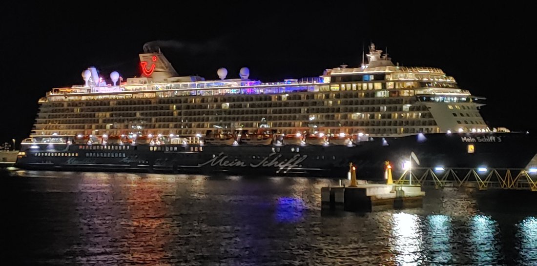 PS: 19:35 Uhr, gerade verlässt die AIDAmira mit lautem Getute und Musik und voll erleuchtet den Hafen.