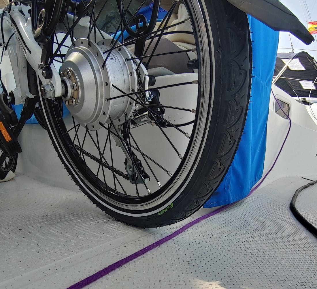 An Bord wollte ich gleich den Schlauch flicken, aber es zeigte sich im Mantel auch ein langer Einschnitt. Anscheinend war ich da nicht nur in den Metallstift gefahren, sondern hatte auch eine Glasscherbe oder ähnliches erwischt. Eine Reparatur war also nicht möglich, deshalb suchte ich im Internet gleich nach einem Fahrradladen. 30 Minuten Fußmarsch entfernt gab es einen und ich hatte tatsächlich Glück, der erste Laden hatte, was ich brauchte, Schlauch und Mantel. Ohne langwieriges Suchen direkt zum Boot zurück und das Fahrrad war bald wieder einsatzbereit.