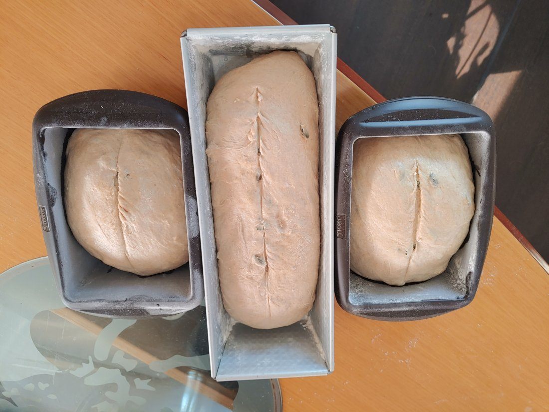 Anstatt Brot einzukaufen, wollte ich auch mal meinen Gas-Backofen ausprobieren und habe eine Brotbackmischung aufgemacht. Der Teig war mit dem elektrischen Handrührer schnell geknetet. Es dauerte tatsächlich eine Weile bis der Backofen auf Temperatur war. In weiser Voraussicht hatte ich mir schon in Deutschland einen Thermometer für den Ofen gekauft, sonst hätte ich nie die richtige Temperatur gefunden. Der Backofen selbst hat nichts, um die Temperatur zu bestimmen.