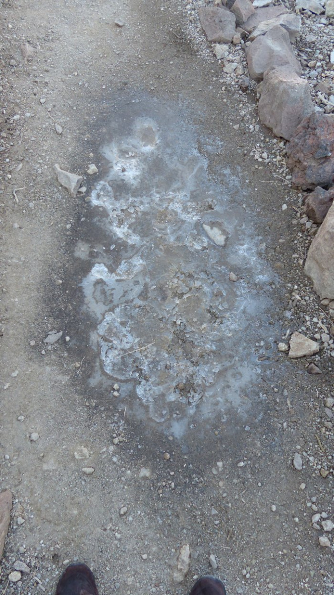 Es gibt viele Wanderwege durch die Caldera, an mehreren Haltestellen. Ich bin bis zur Endhaltestelle gefahren und dort dann einem Rundweg durch die Einöde gefolgt. Knapp 3 Stunden auf den teils losen Felsen, bergauf und begab haben mir gereicht. Die Bilder seht ihr ja. Ich war froh, daß ich noch eine extra Jacke eingepackt hatte, denn es war kalt da oben. Im Schatten auf dem Wanderweg habe ich eine gefrorene Pfütze gefunden. Wenn man dann zwischendurch wieder aus dem Schatten in die Sonne kam, konnte man sich aufwärmen. In jedem Fall braucht man gutes Schuhwerk, der Wanderweg war nur zu einem kleinen Teil leicht zu gehen. Der größere Teil ging über schroffe Felsen und grob angelegte Treppenstufen.