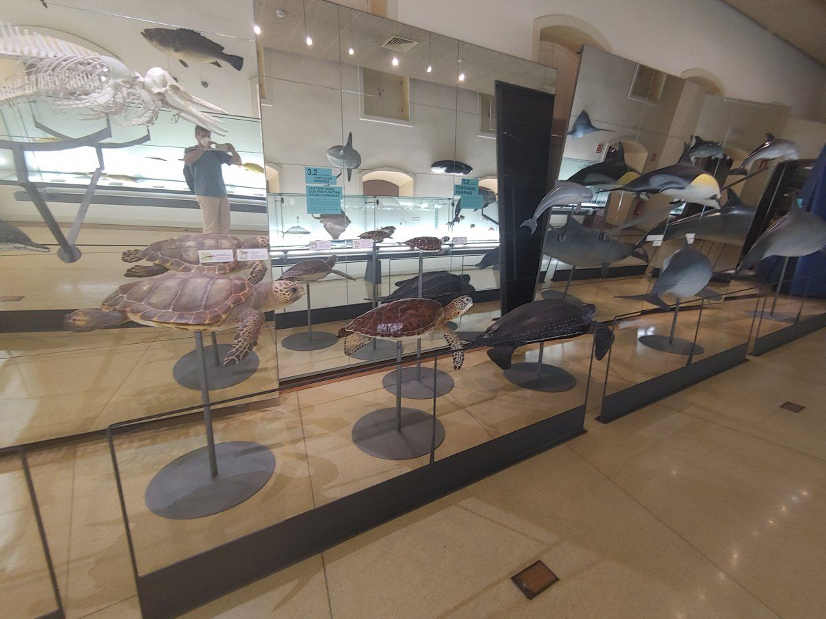 Um wenigstens etwas zu tun und weil es ein wenig wärmer war als die letzten Tage, besuchte ich heute das Naturkundemuseum hier in Santa Cruz. Es ist nicht sehr groß, in zwei Stunden hat man alles gesehen. Obwohl alles nur in Spanisch beschrieben ist, kann man doch eine Menge auch in Deutsch und anderen Sprachen erfahren, durch deren internes WiFi (WLAN)-System. Mit dem Handy erhält man Zugang und kann sich dann, wie bei einer Führung, die Erklärung zum Rundgang anhören. Das war durchaus interessant.