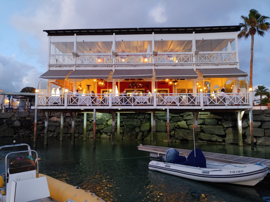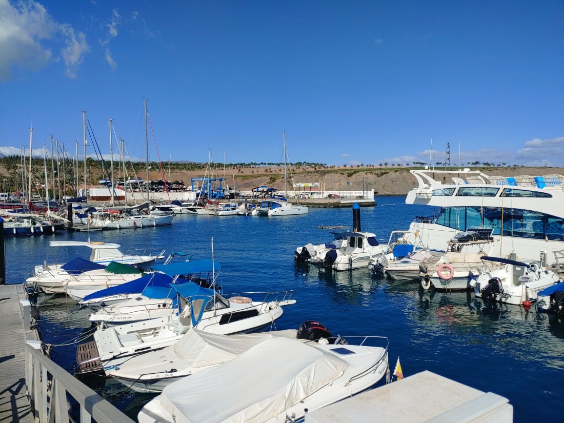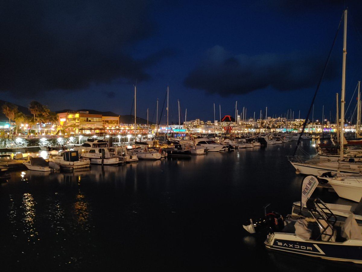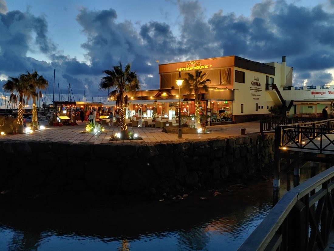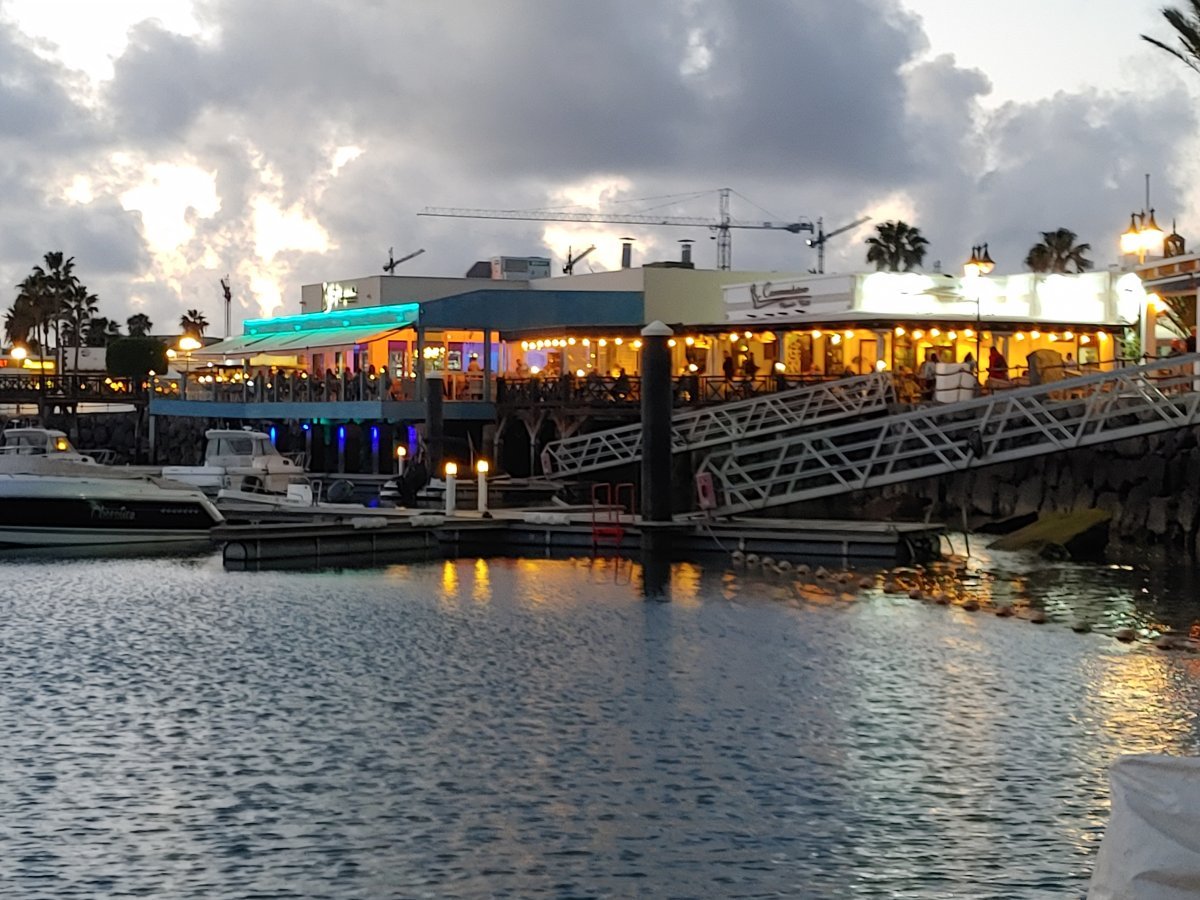Die Bebauung hier ist wirklich nett gemacht, mit Stegen zum Flanieren und die Restaurants haben Terrassen mit Blick auf die Marina. Es gibt einige Restaurants und auch Geschäfte, aber es ist nicht so überlaufen wie in Puerto de Mogan, aber auch nicht so einsam wie Pasito Blanco, gerade die richtige Mischung. Abends gibt es Live-Musik, so wie gerade auch wieder.