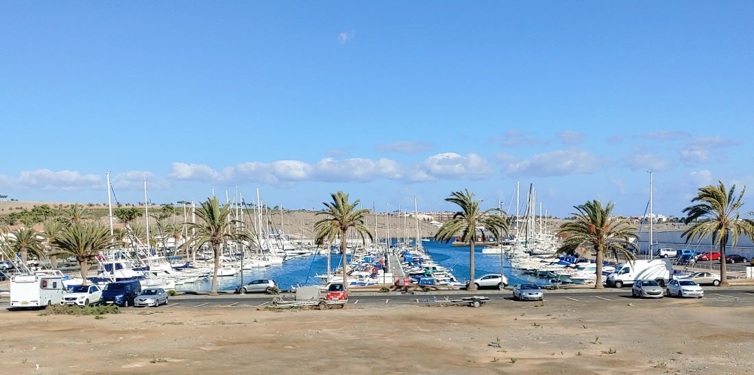 Der neue Plan sieht vor, daß ich bis Samstagabend hier bleibe und dann die Nacht durch nach Norden bis Lanzarote in die Marina Rubicon fahre. Der Wind soll nämlich auf Süd drehen und dann kann es hier ungemütlich werden. Auch auf Lanzarote soll es Wind aus Süd geben, deshalb gehe ich dort in die Marina.
