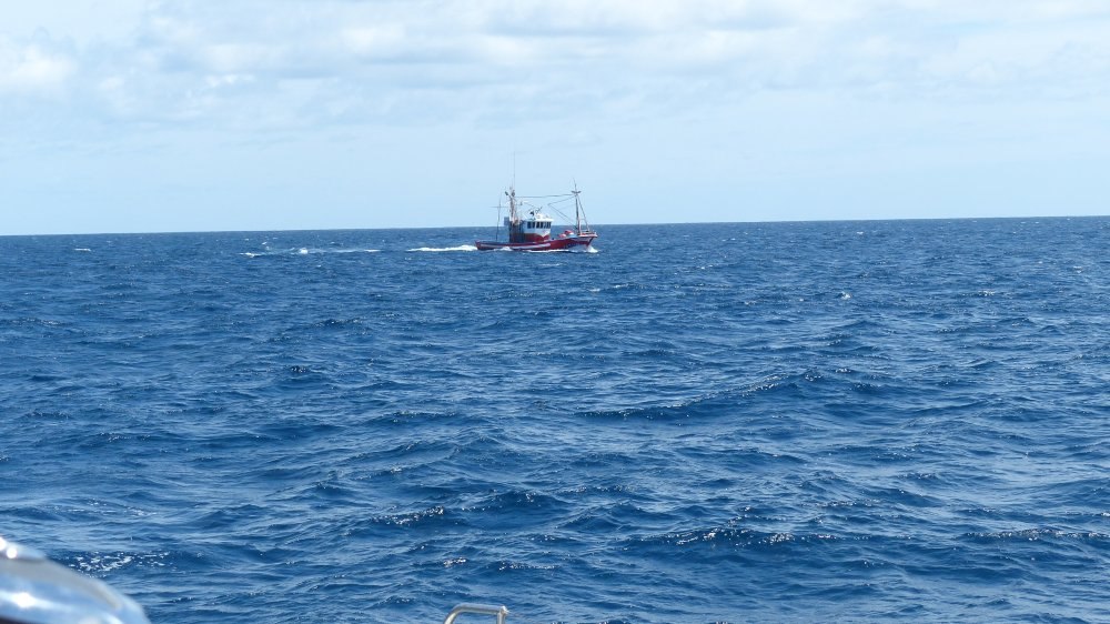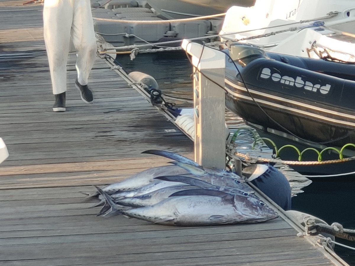 Am Abend kam noch ein kleines Boot, mit einem großen Fang Thunfisch an. Die vier Fische wurden mit Angeln gefangen.