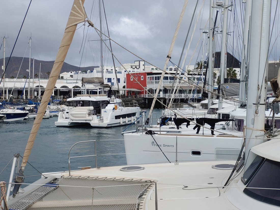 Es gibt hier in der Marina eine große Ansammlung an Katamaranen, wie ich sie noch nicht gesehen habe. Es sind mindestens 30 Stück hier, alleine an dem Steg, an dem ich liege, sind es 8. Sogar 2 davon sind der gleiche Typ wie die Mephisto, eine Lipari 41. Allerdings ist gerade der genau neben mir in einem bedauernswerten Zustand und wahrscheinlich liegt der hier schon eine Weile, ohne daß der Eigner hier war.
