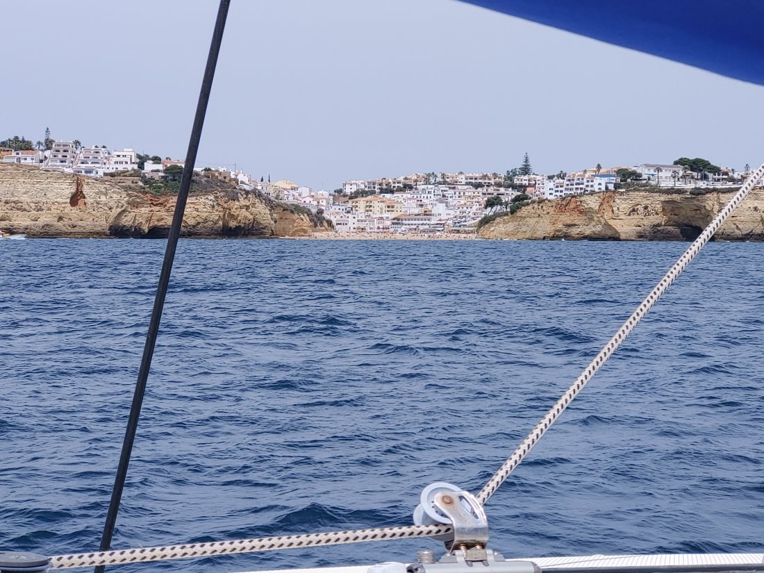 Eigentlich wollte ich heute um 12 Uhr die Marina in Lagos verlassen und nach Albufeira fahren. Leider hatten genau zu der Zeit Mitarbeiter der Marina mit einem Stromkabel zu tun, das quer unter der Ausfahrt verlegt wurde. So mußte ich bis 13 Uhr warten und konnte dann erst los. Albufeira liegt auf halbem Weg nach Culatra, in der Nähe von Faro. Die Fahrt dauerte etwa 4 Stunden. Unterwegs ist nichts Aufregendes passiert, aber ich habe zumindest ein paar Fotos gemacht.