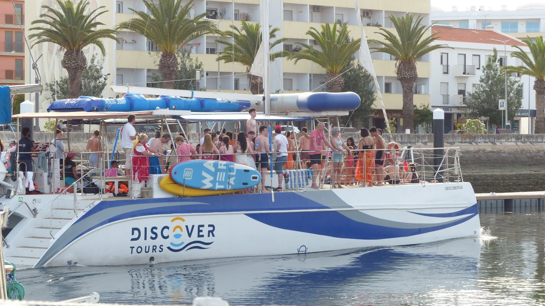 Die letzten Tage war es hier in Lagos recht heiß, um die 30 °C. Um Mitternacht konnte ich noch in T-Shirt und kurzen Hosen an Deck sitzen und mein Eis genießen. Das schöne Wetter bringt es mit sich, daß die Ausflugsboote hier ständig in der Marina ein und ausfahren, mit lauter Musik und jeder Menge grölender Touristen. Auch in den Restaurants um die Marina herum ist bis Mitternacht Betrieb und Musik zu hören. Naja, ich schätze bald werde ich das vermissen, den in Culatra vor Anker wird es sicher sehr viel ruhiger. Bin gespannt.