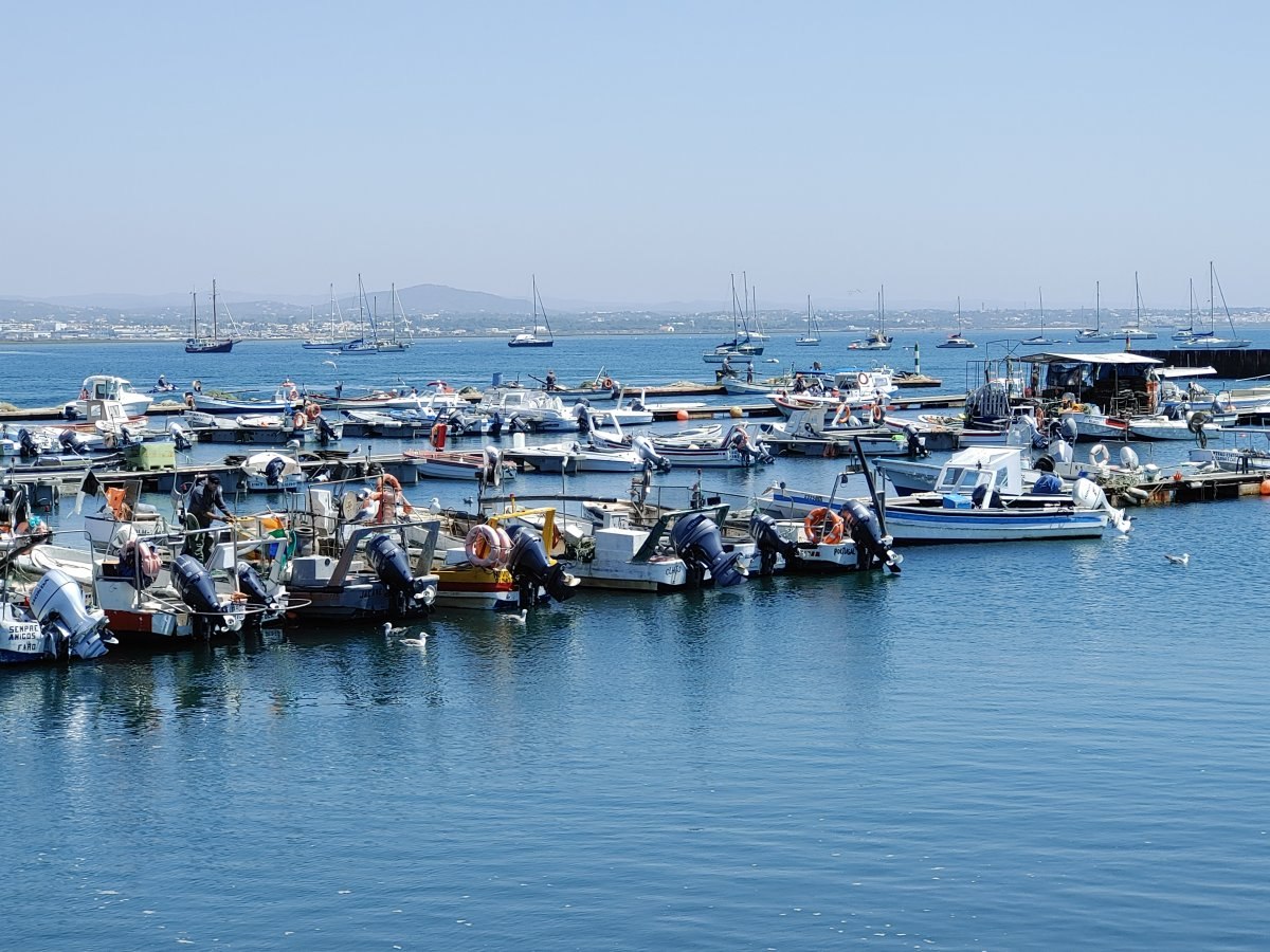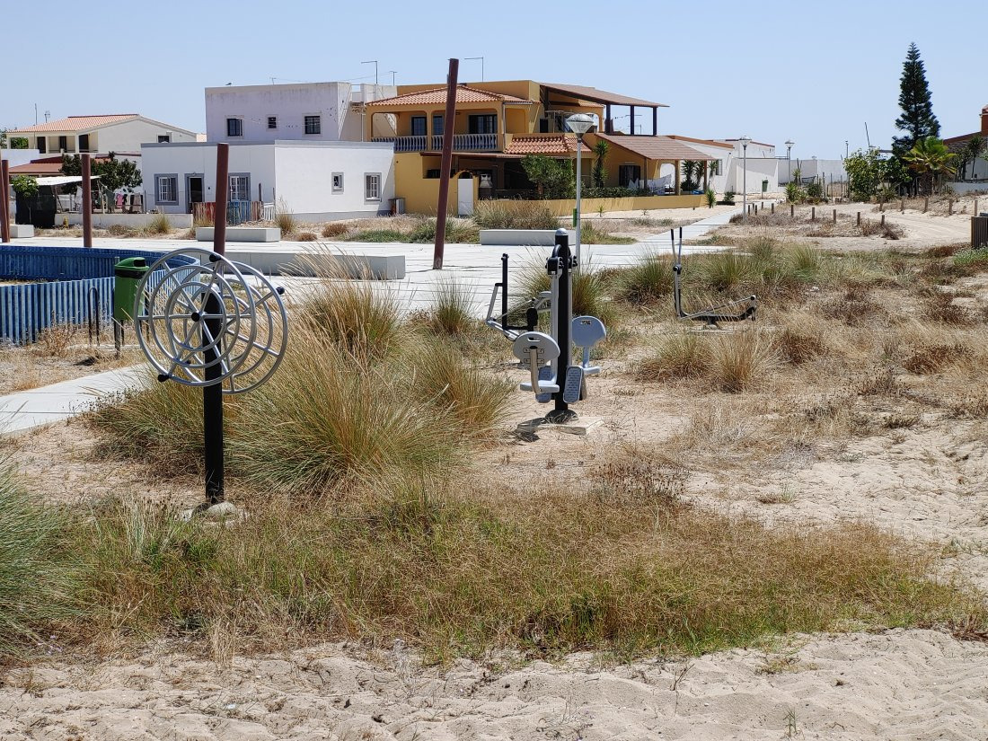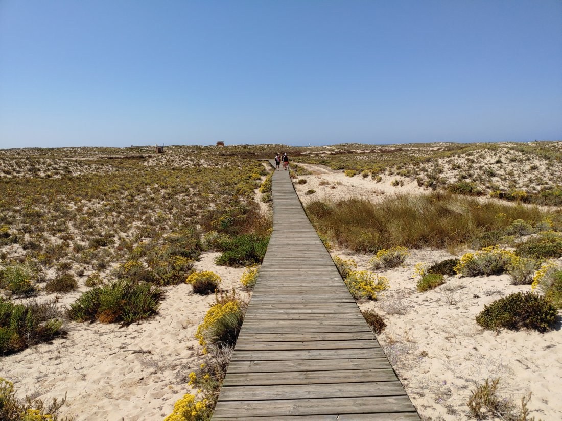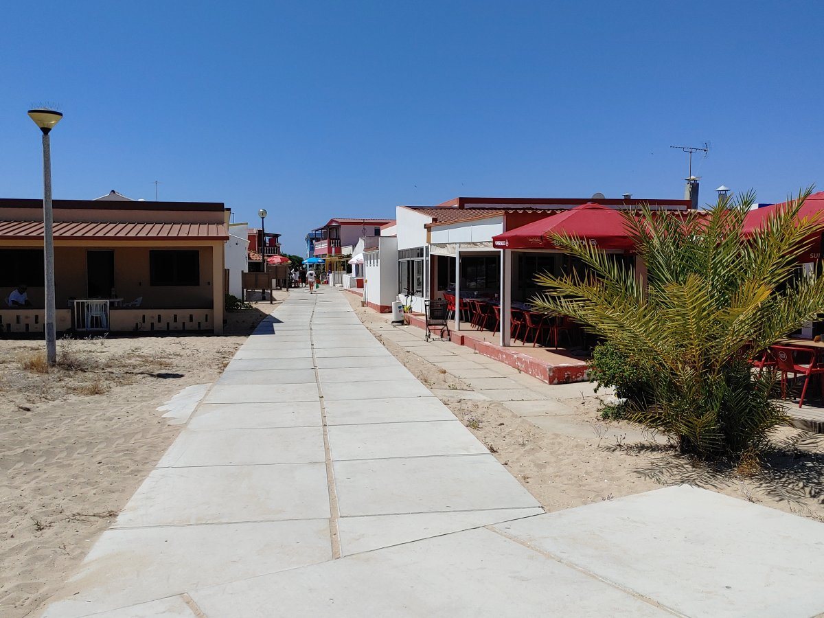 Die Insel besteht, ähnlich wie Fraser-Island in Australien, nur aus Sand, allerdings ist sie um einiges kleiner. Die spärliche Vegetation auf den Dünen hält die Insel quasi zusammen und um sie zu schützen, gibt es Stege, um sie auf dem Weg zum Strand zu überqueren. Im Dorf selbst gibt es ein paar Cafés, ein oder zwei Supermärkte und einige Souvenirläden, soweit ich sehen konnte. Der Hauptweg führt direkt von der Marina durch den Ort zum Steg durch die Dünnen bis zum Strand. Das ist auch das Ziel der Leute, die mit den Fähren vom Festland, Olhao oder Faro, hier ankommen. In der Lagune selbst ist es übrigens nicht so toll zu schwimmen, das Wasser ist recht trübe und mit allerlei Treibgut versetzt. Am Strand, direkt am Atlantik, ist das Meer wesentlich klarer und sauberer. Hier ist man durchaus auf die Touristen eingestellt und es gibt auch eine Rettungsstation.