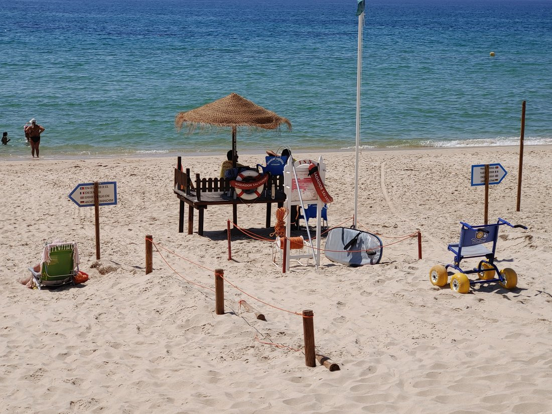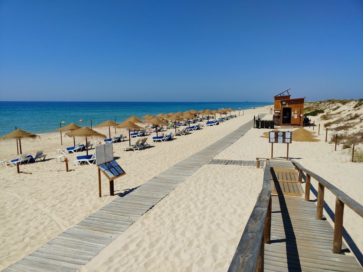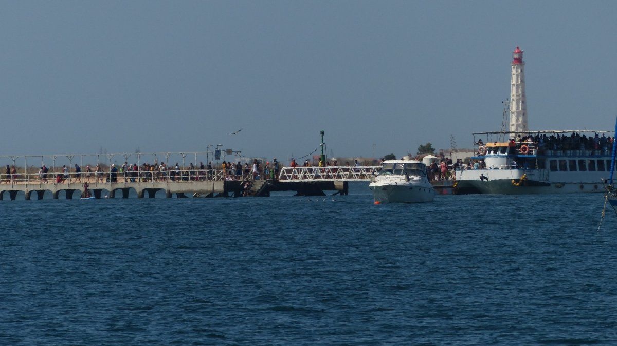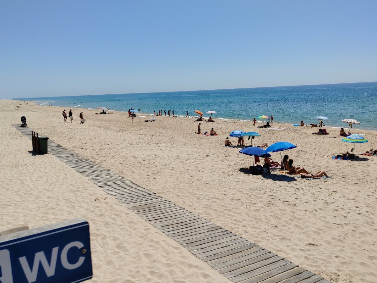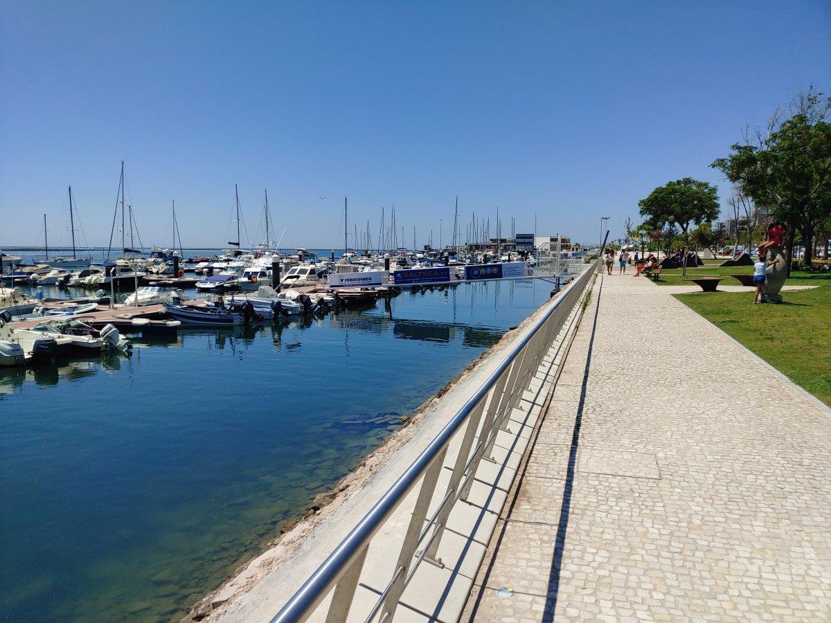 Die Insel besteht, ähnlich wie Fraser-Island in Australien, nur aus Sand, allerdings ist sie um einiges kleiner. Die spärliche Vegetation auf den Dünen hält die Insel quasi zusammen und um sie zu schützen, gibt es Stege, um sie auf dem Weg zum Strand zu überqueren. Im Dorf selbst gibt es ein paar Cafés, ein oder zwei Supermärkte und einige Souvenirläden, soweit ich sehen konnte. Der Hauptweg führt direkt von der Marina durch den Ort zum Steg durch die Dünnen bis zum Strand. Das ist auch das Ziel der Leute, die mit den Fähren vom Festland, Olhao oder Faro, hier ankommen. In der Lagune selbst ist es übrigens nicht so toll zu schwimmen, das Wasser ist recht trübe und mit allerlei Treibgut versetzt. Am Strand, direkt am Atlantik, ist das Meer wesentlich klarer und sauberer. Hier ist man durchaus auf die Touristen eingestellt und es gibt auch eine Rettungsstation.