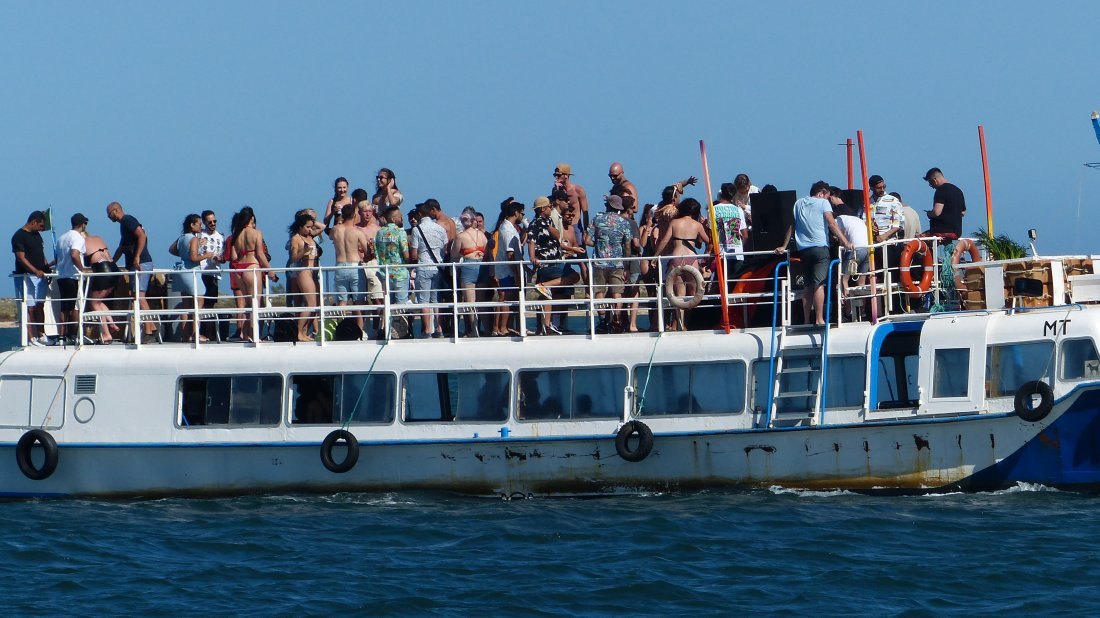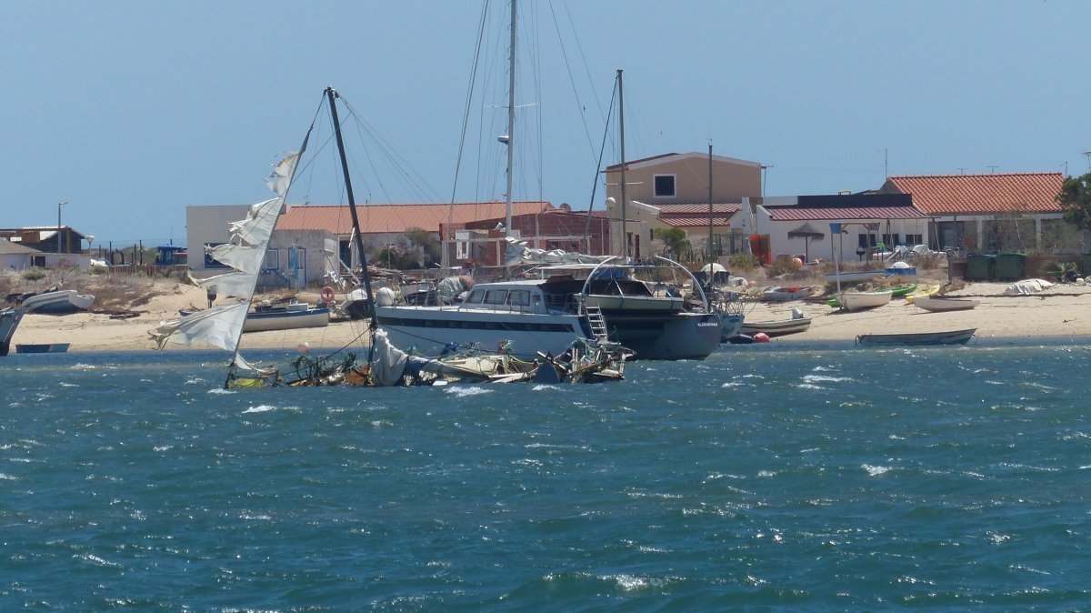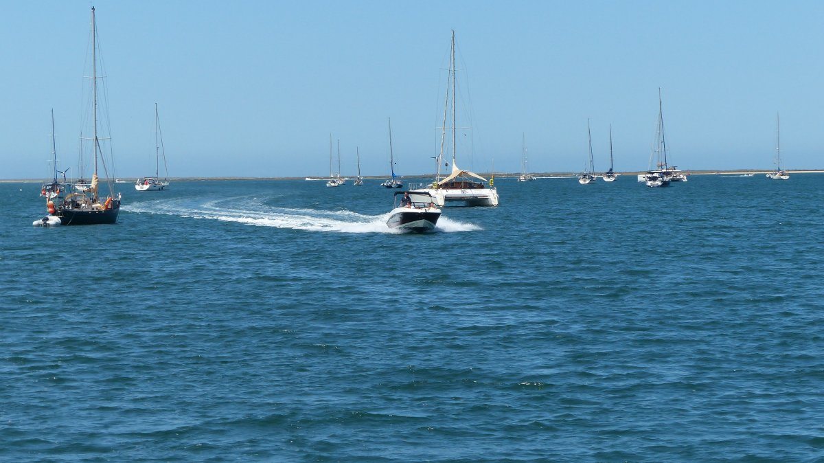 Hier ist nun der Sommer ausgebrochen, nicht nur wegen der Temperatur, sondern auch wegen der Menschenmassen, die auf die Insel kommen. Am Wochenende waren viele Menschen mit den Fähren gekommen und den kleinen Wassertaxis und anderen Booten. Ich schätze, in Portugal sind inzwischen auch Ferien, denn auch die Anzahl der portugiesischen Boote, die um mich herum ankern, ist sprunghaft in die Höhe geschnellt. Es sind deutlich mehr Boote hier vor Anker als zuvor. Bis zum Wochenende war es hier eher windstill und damit verbunden lag die Mephisto auch sehr ruhig auf dem Wasser. Seit Montag aber weht hier wieder ein ordentlicher Wind und verursacht einen permanenten Schwell, der tagsüber noch harmlos ist, aber nachts für eine deutliche Geräuschkulisse im Boot sorgt. Das plätschernde Wasser an der Bordwand ist gewöhnungsbedürftig.