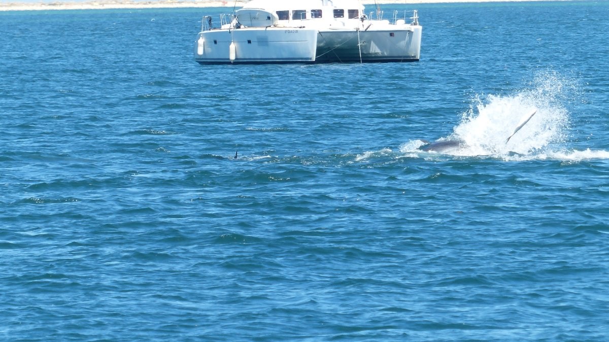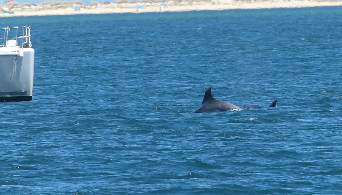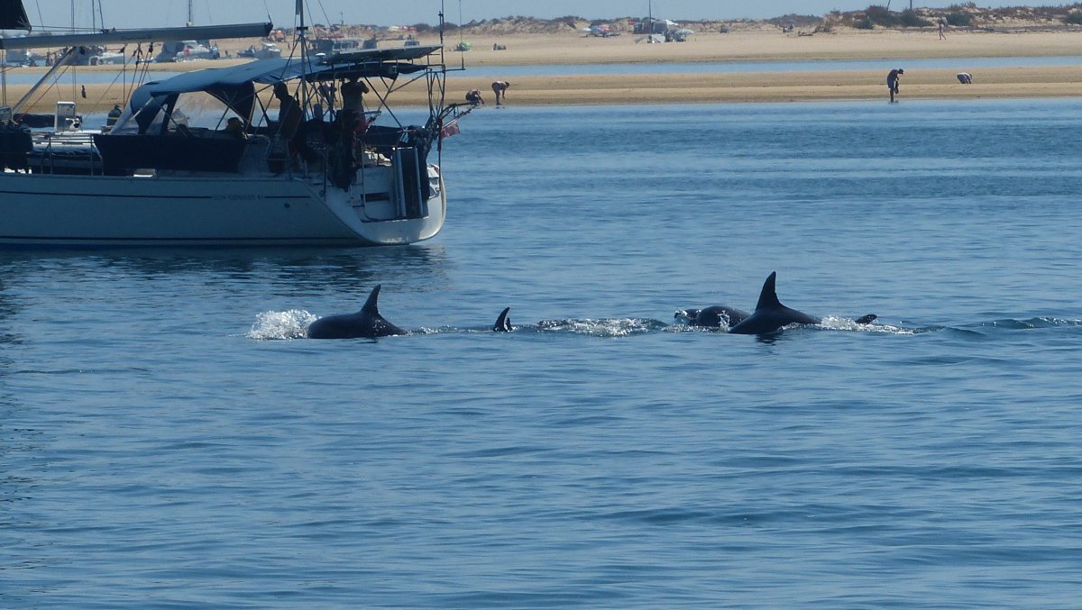 Heute kamen ganz überraschend wieder Delphine oder Tümmler an der Mephisto vorbei. Diesmal bin ich sicher, daß es keine Wale waren.