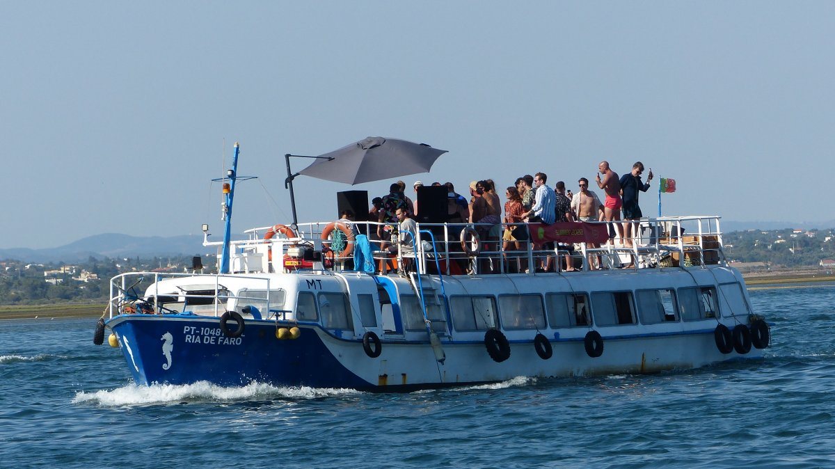 Samstagsabends scheint es in Culatra immer öffentliche Musikveranstaltungen zu geben. Gestern ging es bis 2:30 Uhr, die Musik ist hier auf dem Wasser deutlich zu hören und die Wassertaxis sind ständig unterwegs, um Leute von außerhalb nach Culatra oder nach Hause zu bringen, nach Faro oder Olhao.