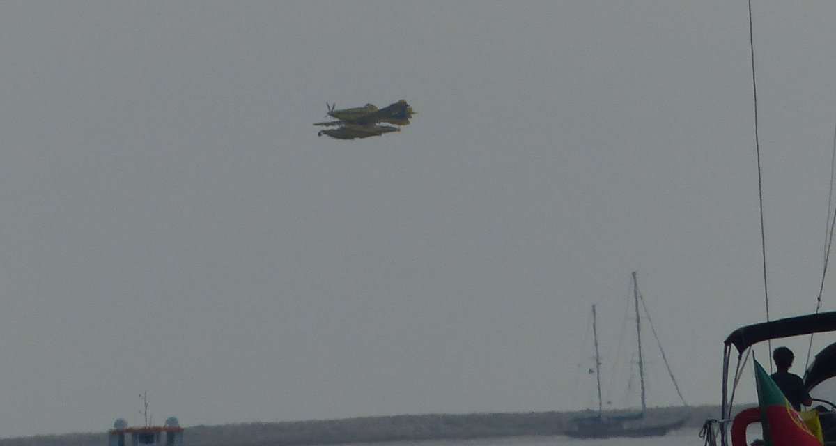 Zurück zur Algarve, das große Feuer vom Mittwoch war am nächsten Morgen gelöscht, aber es gab noch ein paar kleinere Rauchsäulen in der Umgebung zu sehen und die Löschflugzeuge sind hier ständig unterwegs gewesen. Der Wind hat glücklicherweise allen Rauch von der Lagune hier fortgeweht.