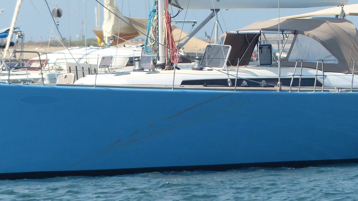 Aber heute Morgen lag das Boot vor Anker und es schien keinen Schaden davon getragen zu haben. Nur ein brauner Streifen an der Seite zeigt die Auflagestelle an. Noch mal Glück gehabt.