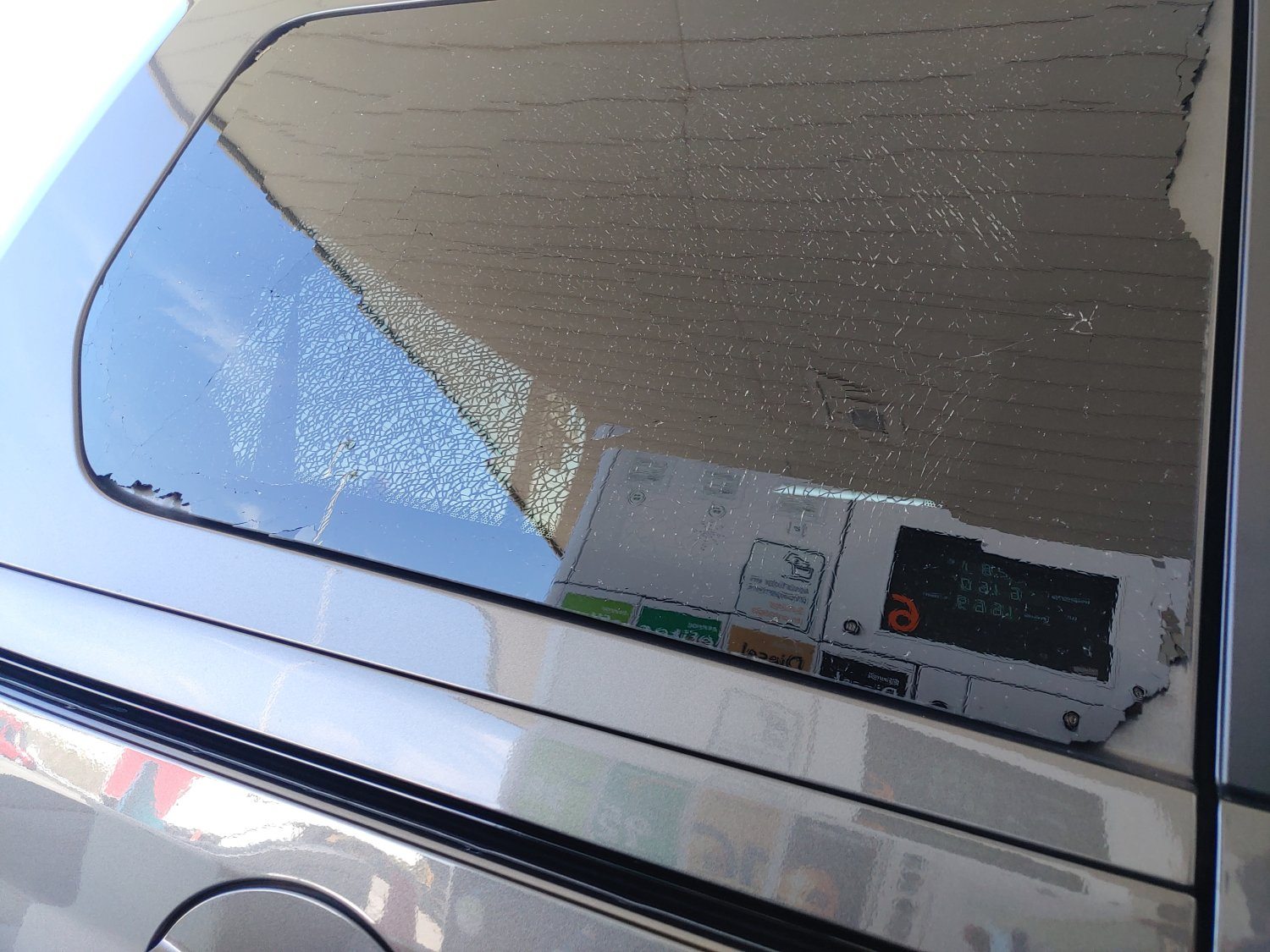 Da ich das Auto hier dringend brauche, habe ich die Seitenscheibe bisher nur mit Klebefolie fixiert. Ich hoffe das hält noch eine Weile.