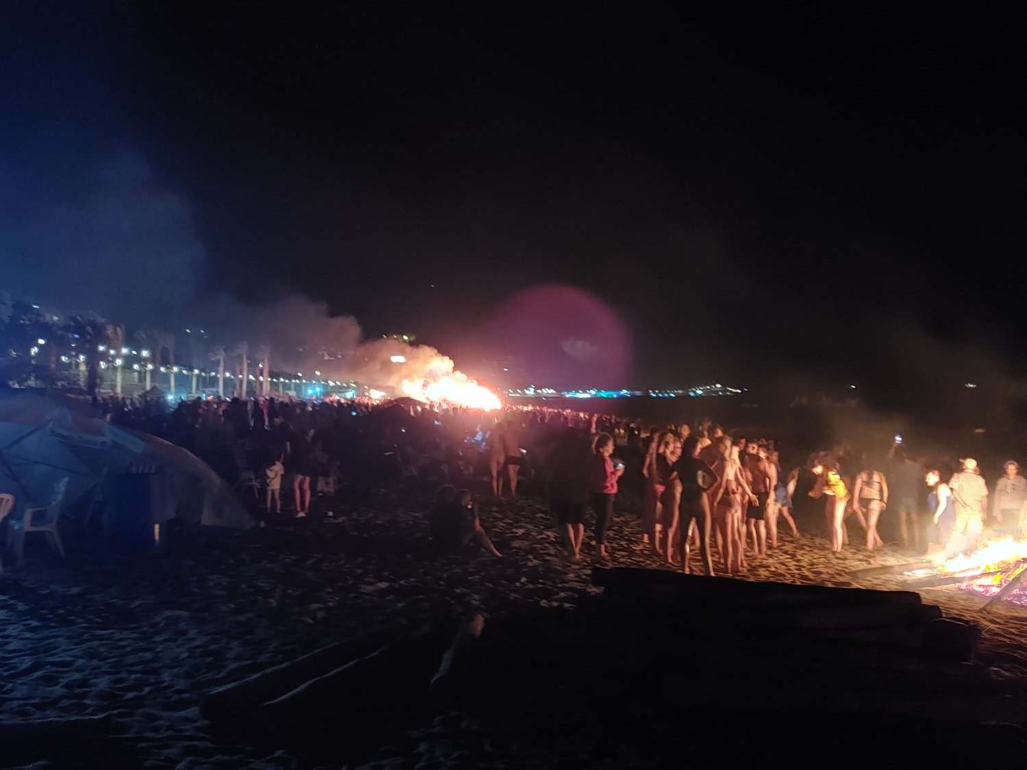 Am 23.06. , gestern, wurde hier das Fest des Heiligen Juan gefeiert. Das Johannisfest, auch Johannisnacht genannt, ist ein Fest heidnischen Ursprungs (Litha), das am 23. Juni, dem Vorabend des Tages von Johannes dem Täufer, gefeiert wird und bei dem üblicherweise Freudenfeuer entzündet werden. Die Ankunft der Sommersonnenwende wird in ganz Spanien mit althergebrachten Riten und Traditionen gefeiert. Die Johannisnacht gilt als die kürzeste Nacht des Jahres, obwohl sie in einigen Städten bis zum Morgengrauen dauert. Die Johannisnacht hat den Zauber der alten heidnischen Feste übernommen, die zur Zeit der Sommersonnenwende veranstaltet wurden. Der Ursprung dieses Brauchs liegt in den Feierlichkeiten, mit denen die Ankunft der Sommersonnenwende am 21. Juni in der nördlichen Hemisphäre begangen wurde und deren wichtigster Ritus im Entzünden eines Lagerfeuers bestand. Der Zweck dieses Ritus war es, der Sonne mehr Kraft zu geben, die von diesen Tagen an schwächer wurde – die Tage wurden bis zur Sommersonnenwende immer kürzer. Symbolisch hat das Feuer auch eine „reinigende“ Funktion für die Menschen, die es betrachten.