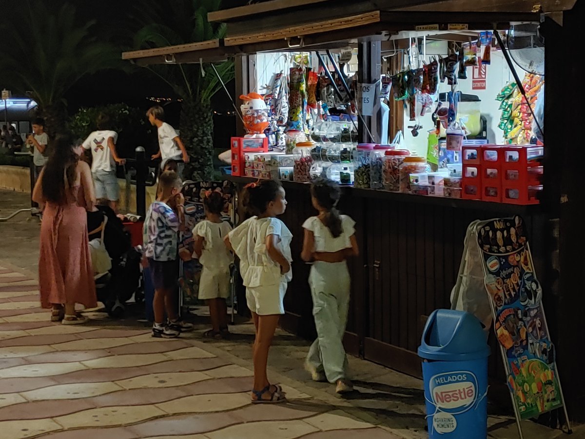 Ich fand es immer erstaunlich, wie selbstverständlich auch gegen Mitternacht noch die Kinder hier am Strand aktiv sind. Eltern sind selbst mit den Kleinsten noch bis spät in die Nacht unterwegs. Während in Deutschland üblicherweise für Kinder unter 10 Jahren ab etwa 21 Uhr Schlafenszeit ist, sind hier selbst 2- oder 3-jährige noch bis Mitternacht und später mit ihren Eltern unterwegs. Schon 6- oder 8- jährige laufen hier in Gruppen auch alleine am Strand entlang, zumindest sind die Eltern nicht in unmittelbarer Nähe.