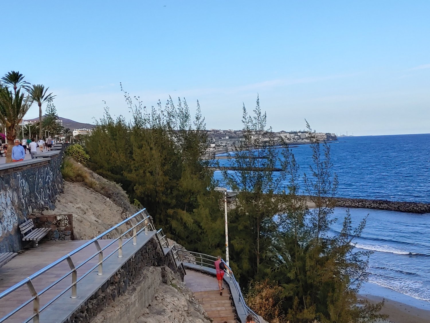 Da ich mit der Mephisto ja schon vier Wochen in Pasito Blanco lag, gleich neben an, war diese Touristenhochburg für mich nun nicht sonderlich interessant was die kulturellen Sehenswürdigkeiten anbelangte. Ich wollte nur dem Regen entfliehen und etwas Sonne tanken. Dafür war das Hotel gut genug, mit kurzen Wegen zum Strand und einer sehr guten Küche. Außerdem gab es einen Fitnessraum, den ich viermal die Woche nutzte und eine kleine Sauna.