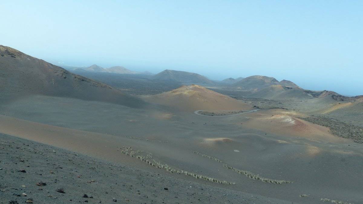 Nach wie vor ist kein geeignetes Wetterfenster in Sicht. Im Moment bin ich sicher, daß sich vor dem 23.04. keine Möglichkeit ergibt Richtung Norden aufs Festland zu segeln. Um die Zeit ein wenig zu nutzen und mehr von Lanzarote zu sehen, habe ich einen Tagesausflug gebucht. Mein Hauptziel war der Nationalpark Timanfaya und eigentlich wollte ich ihn auf eigene Faust besuchen, aber das wäre zu aufwändig geworden. Es fährt kein öffentlicher Bus dahin, zu Fuß von der nächsten Bushaltestelle wären es 2 Stunden einfache Strecke gewesen und mit Taxi oder Mietwagen wäre es doppelt so teuer geworden wie mit der Tagestour, auf der auch noch andere Ziele angefahren werden. Übers Internet ließ sich die Tour problemlos buchen und der Bus hat mich auch direkt vor der Marina abgeholt. Der Reiseführer sprach Spanisch, Englisch und Deutsch und hat unterwegs auch immer viel erklärt.